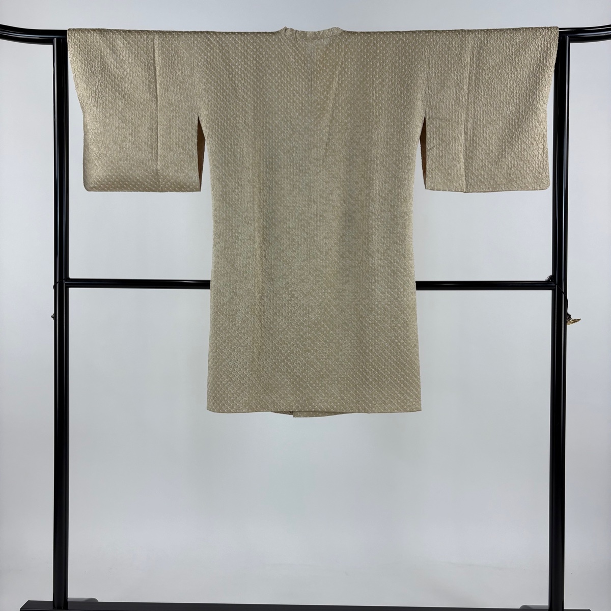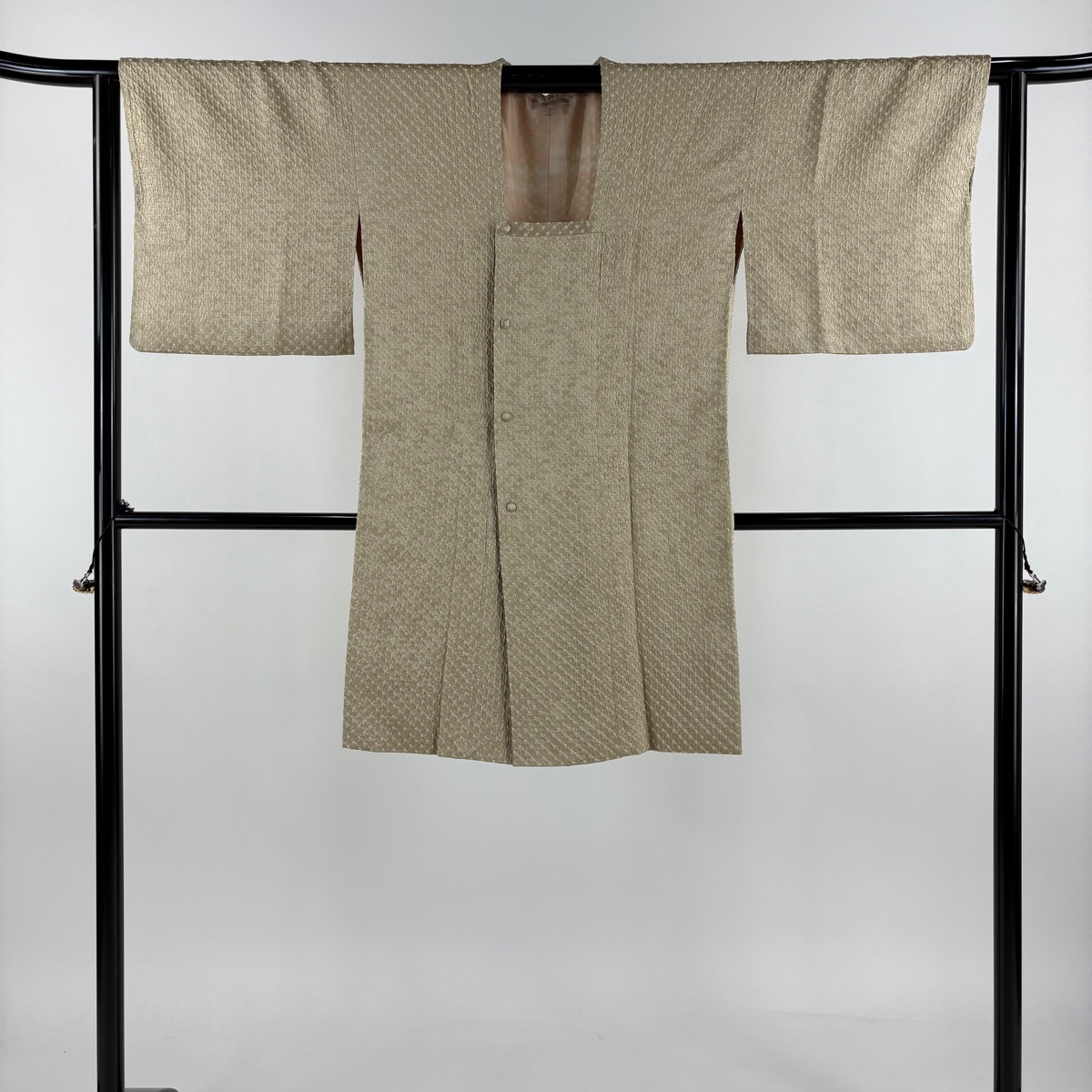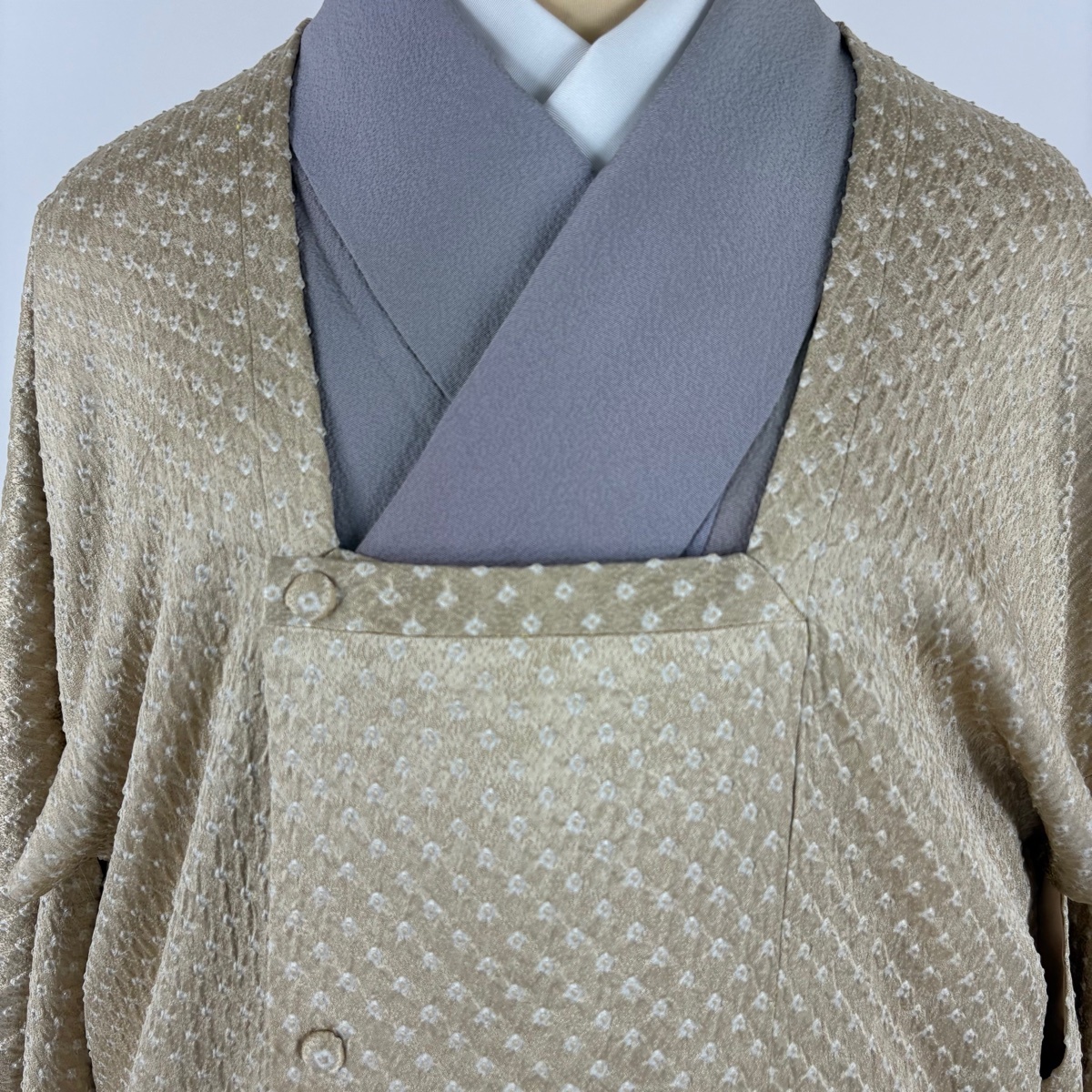 | 道行 美品 名品 和装コート 角衿 絞り ベージュ 身丈97 裄丈64 M 正絹 【中古】 |