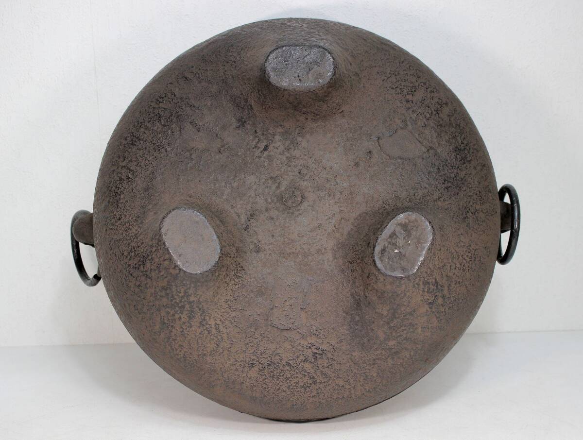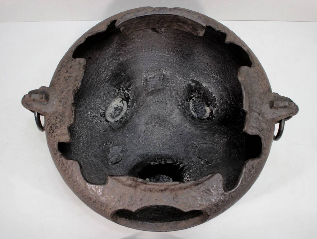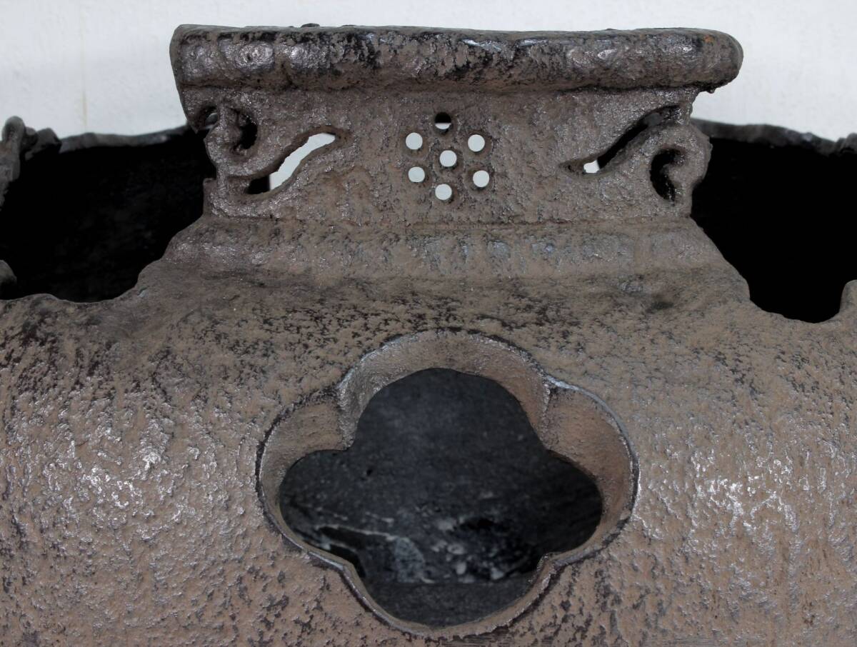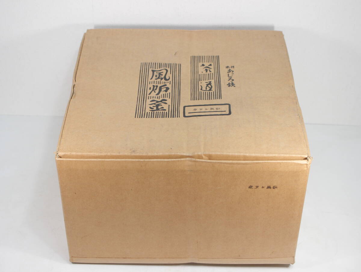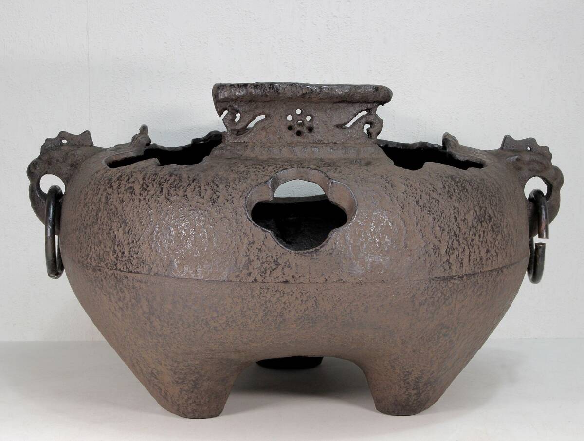 あじろ鉄 鉄製 やつれ風炉 風炉釜 獣耳遊環 破風炉 欠風炉 窶れ風炉 破れ風炉 紙箱入り 未使用品 煎茶道具 茶道 茶釜
