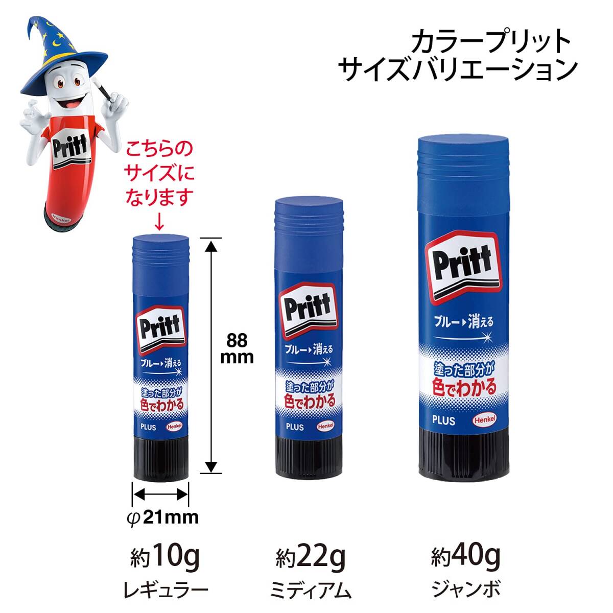 プリットは1969年にドイツで誕生した世界初のスティックのりで、以来世界121ヶ国で10億本以上販売された世界的ブランドです。 1.ブルーの色付きのりで、塗った部分がひと目でわかる、しばらくすると色が消える。 2.塗り残しやはみだしを防止。 3.ムラになりにくく軽い力で塗ることが出来る