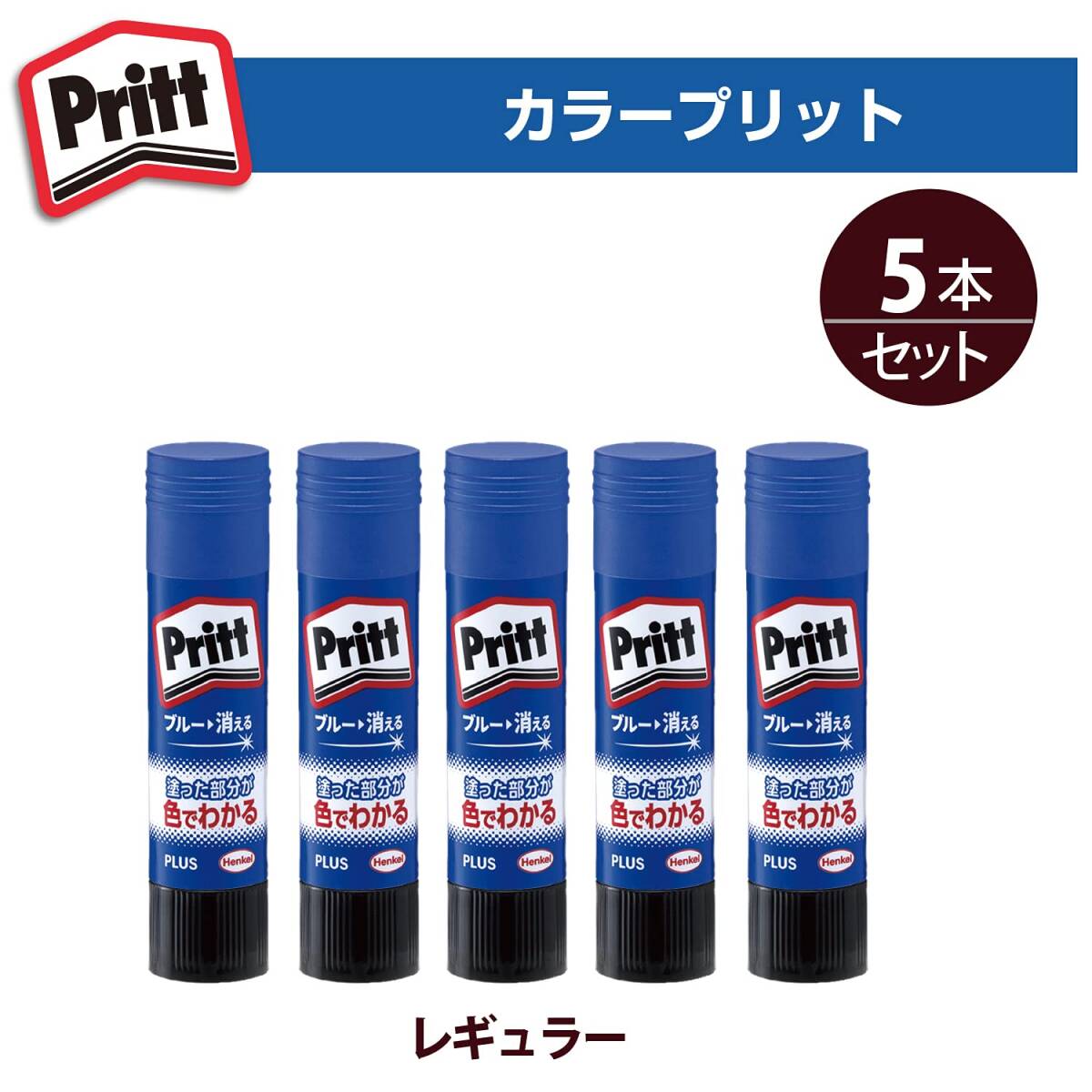 プラス スティックのり プリット のり カラープリット レギュラーサイズ 5本 29-722 ×5