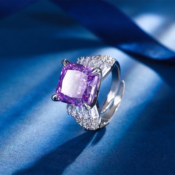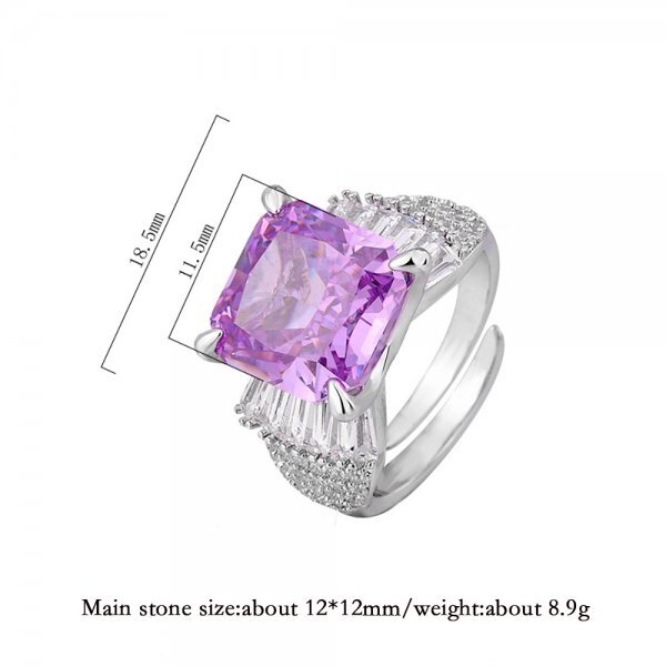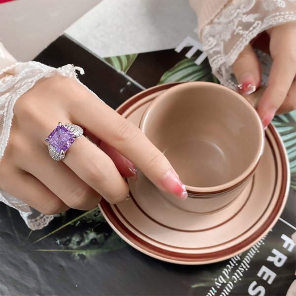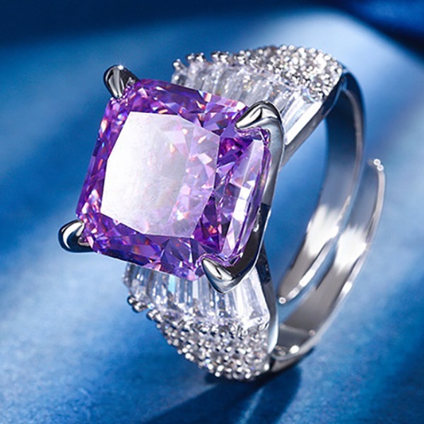 シックなカット アメジストリング、12x12mm、ラボダイヤモンド、ウェディング、カクテルパーティー、上質なジュエリー
