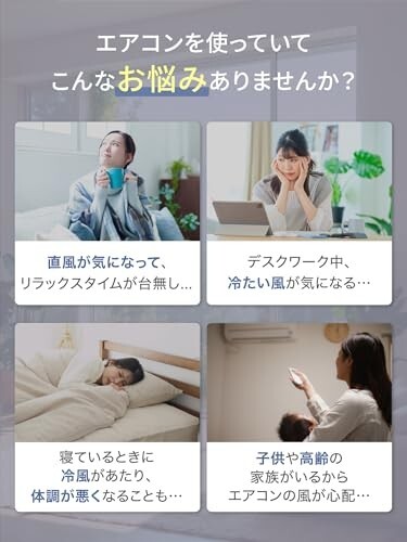 • 直撃風防止:エアコンの風を分散し、部屋全体に快適な空気を循環。