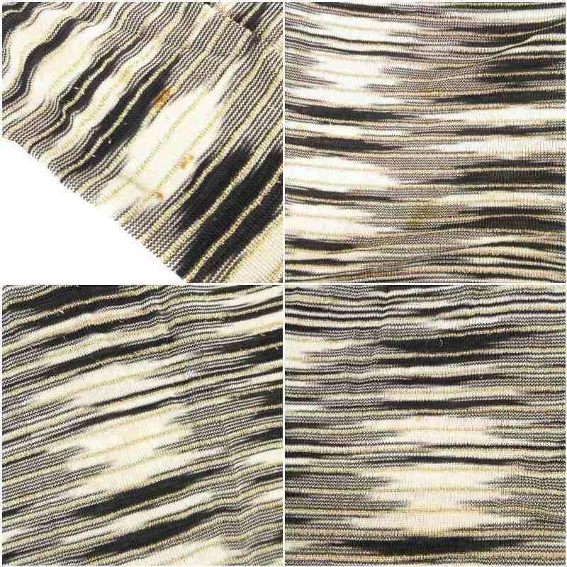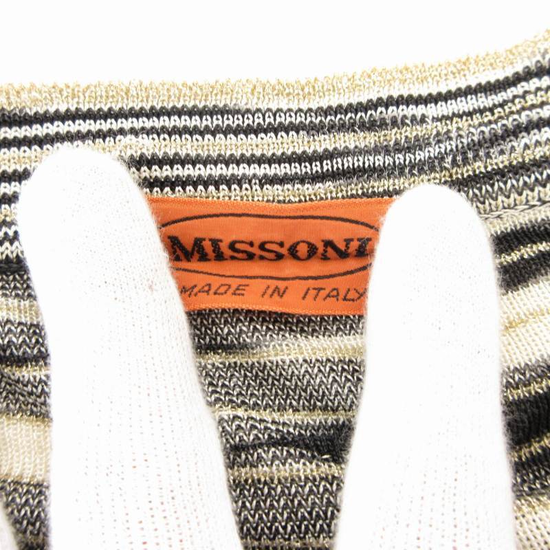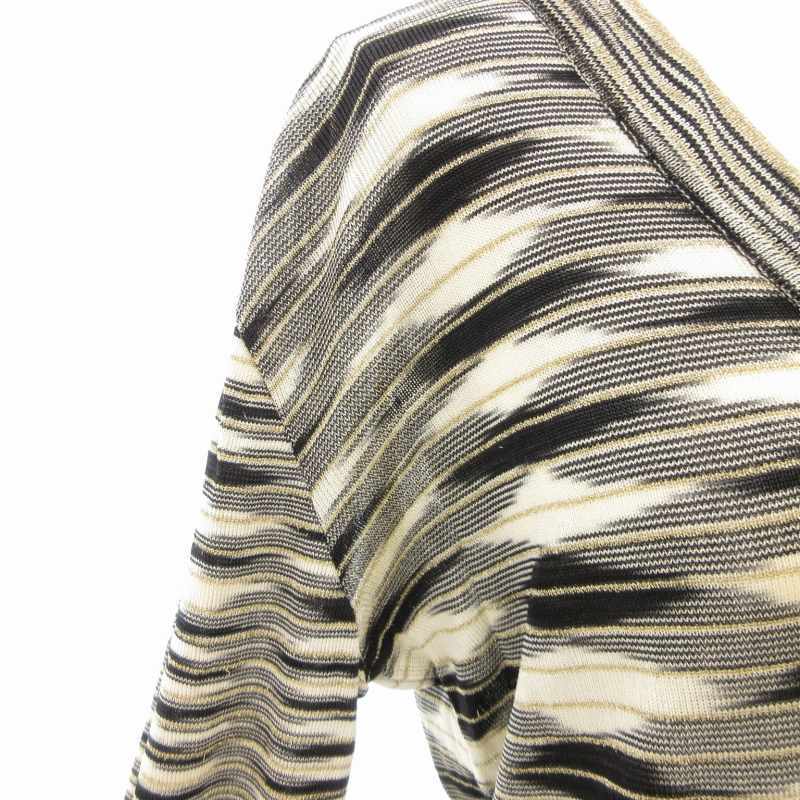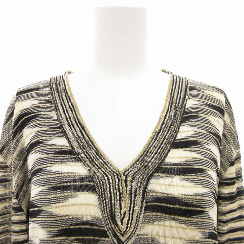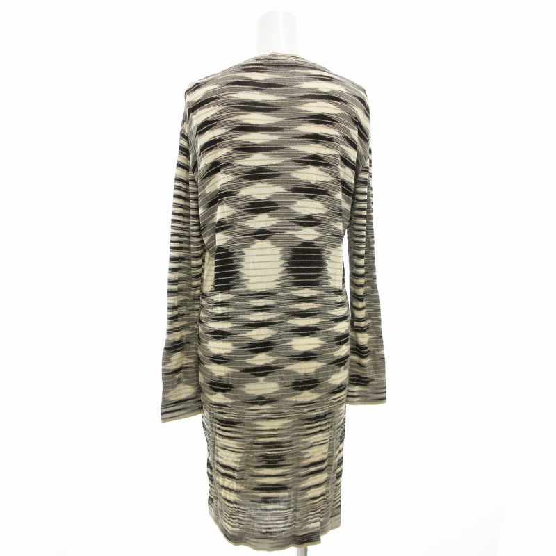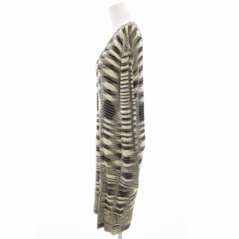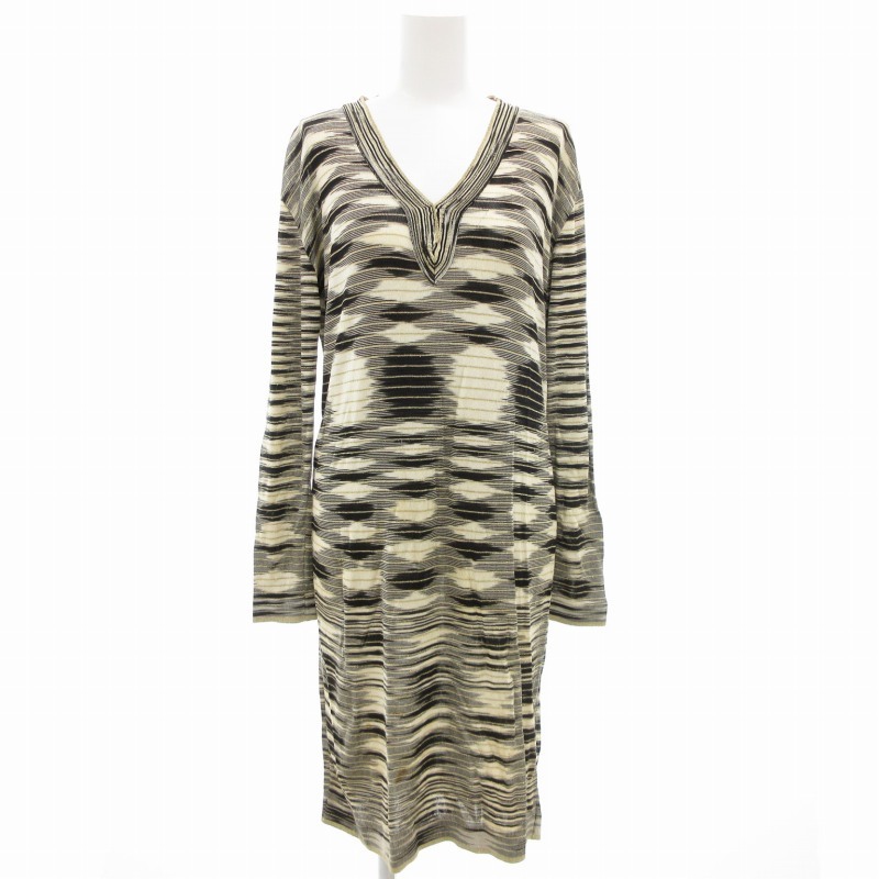 ミッソーニ MISSONI ワンピース ひざ丈 長袖 ボーダー 総柄 Vネック ベージュ 黒 ブラック /GV レディース