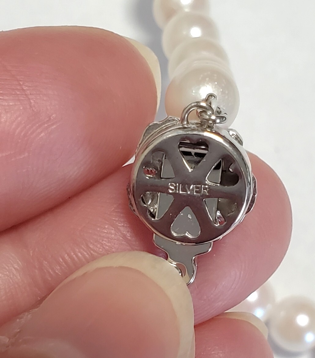 SILVER刻印  本真珠  ネックレス  SV  パール  レディース アクセサリー 6,4mm-6,9mm  29,2g  長さ42,5cm  ホワイト 美品