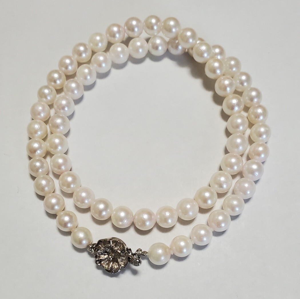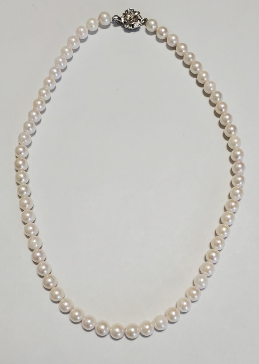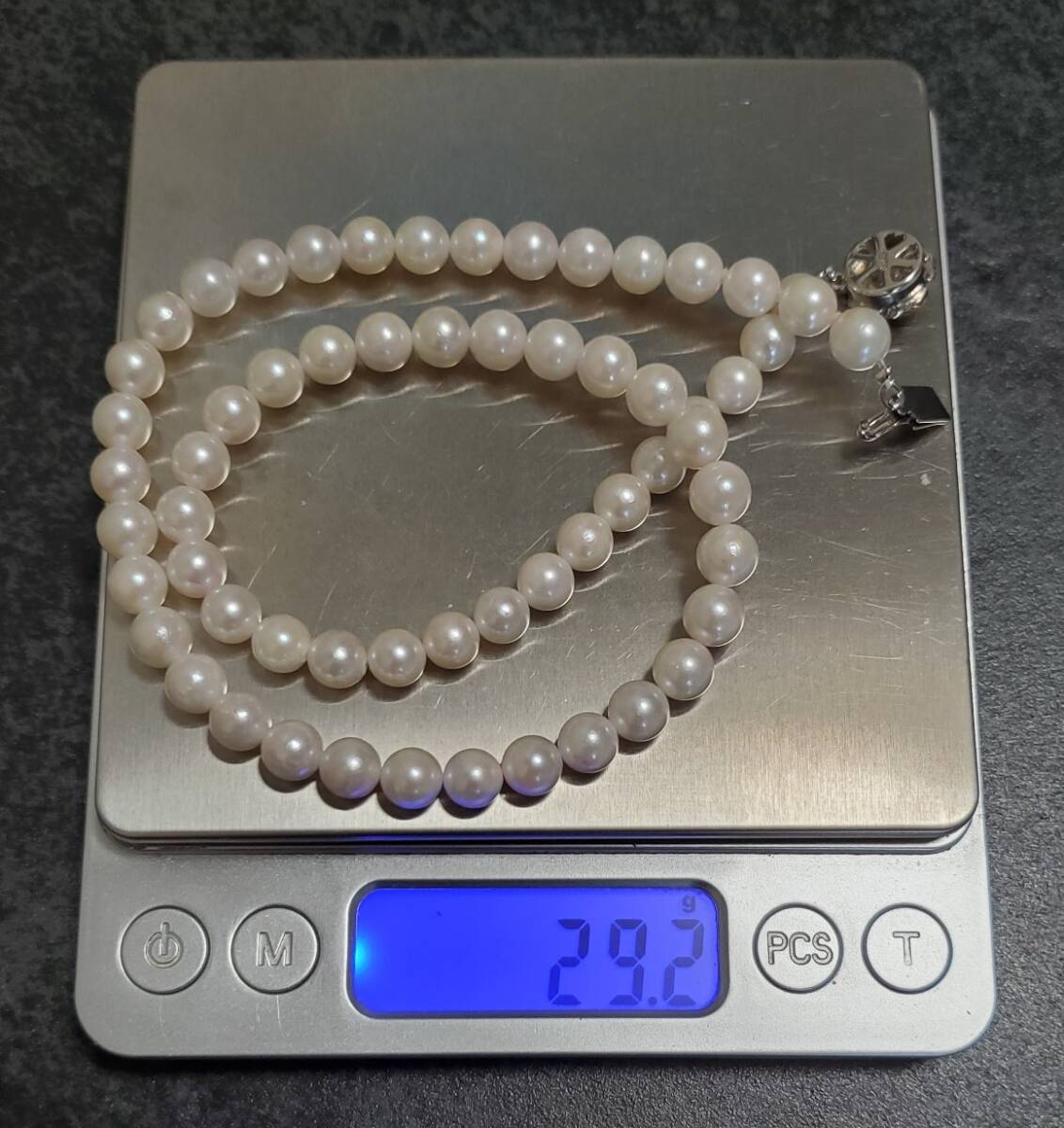 SILVER刻印 本真珠 ネックレス SV パール レディース アクセサリー 6,4mm-6,9mm 29,2g 長さ42,5cm ホワイト 美品