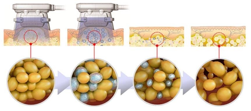 超音波や高周波と違い、脂肪細胞を小さくするのではなく、直接壊死させる、つまり細胞数を減らすことができます。