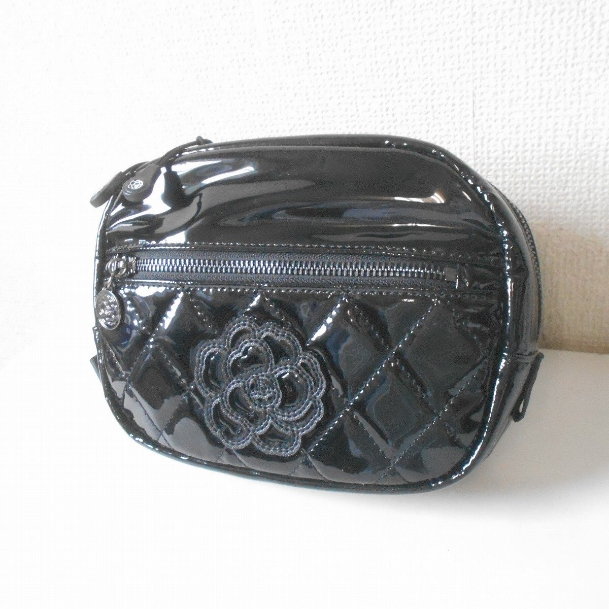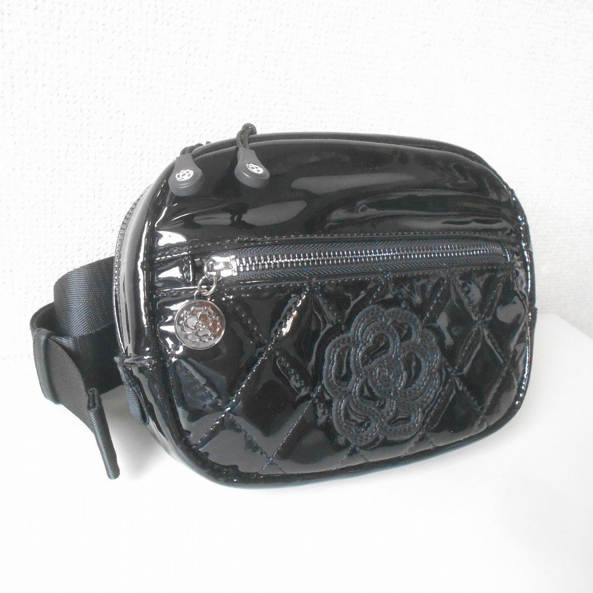 【ポイント】インゲボルグのウエストバッグになります。お色は黒色でお花(カメリア?)の付いた、とっても素敵なデザインです。