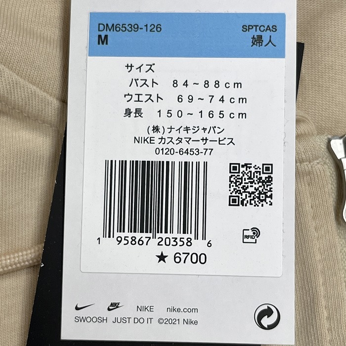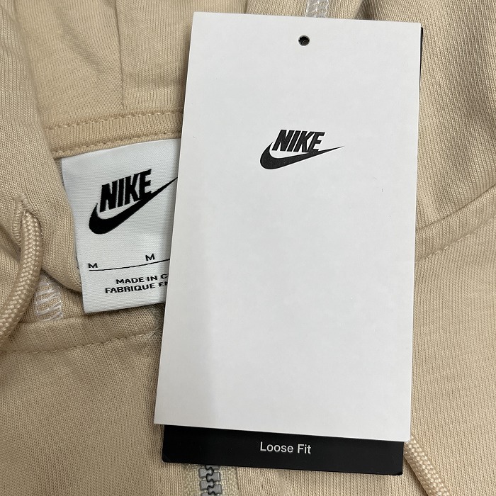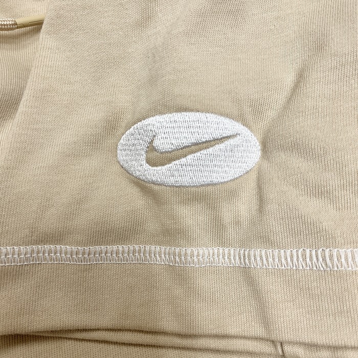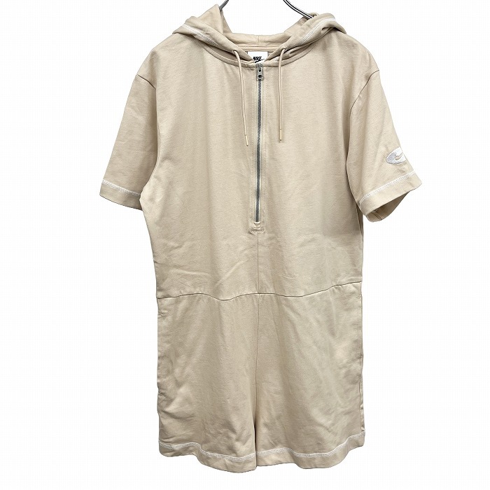| 商品タイトル | ナイキ 【新品】NIKE パンツワンピース パーカー ハーフジップ 半袖 袖にロゴ刺繍 裏地無し 綿100% M ベージュ ベージュ×白 レディース |