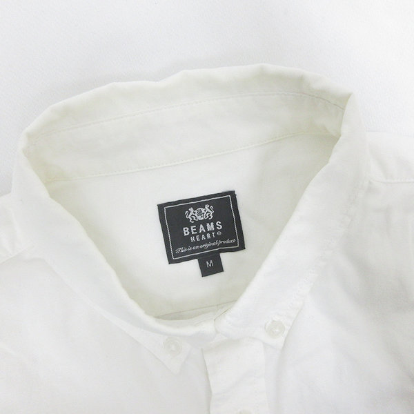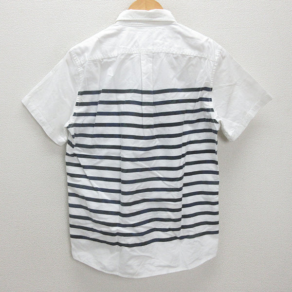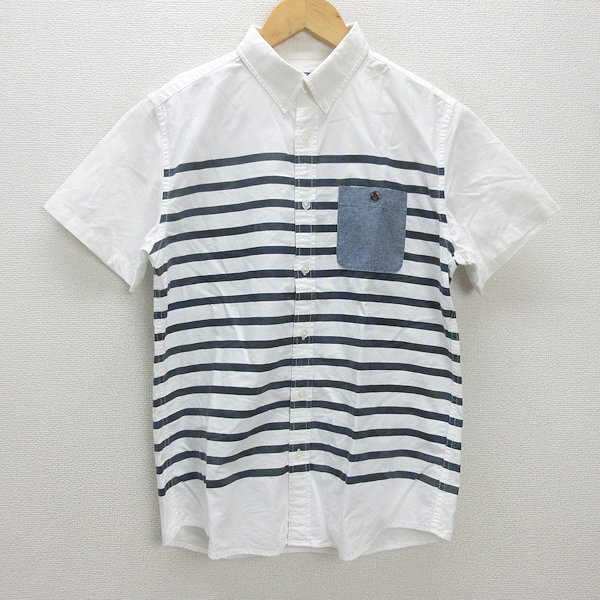 G■ビームス/BEAMS HEART 半袖シャツ/ボーダー柄 コットン【M】白紺/men's/171【中古】■