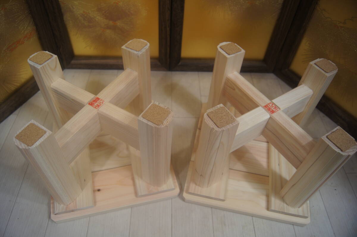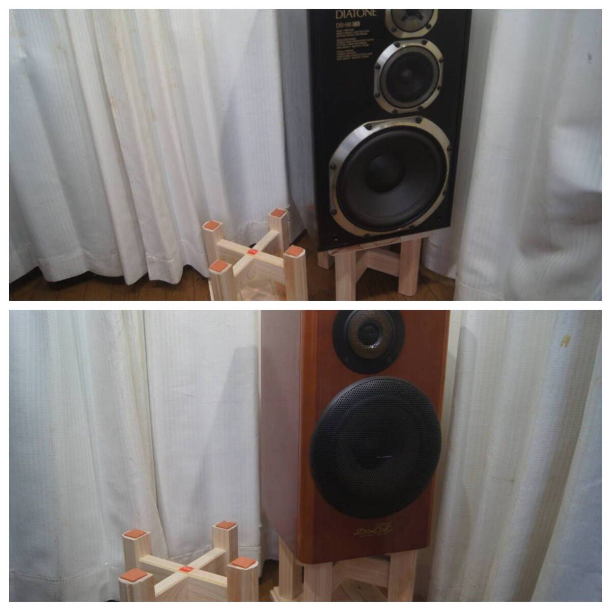 | ★新品頑強・硬質檜本木目スピーカースタンド:耐荷重60Kg★レスポンス向上~音が拡がる。 8月一杯迄の限定品になりますが、耐荷重量30kgの新品大型回転盤は、角度の変化による音質変化や、また清掃時にも大変便利です。★最初は白木無垢で後に着色♪ ♪新品頑強☆未使用☆1年間原形保証★本物の木目と着色の楽しみ人気の硬質檜無垢材使用★オリジナル頑丈リバーシブルスピーカースタンド・ペア☆彡。 ★こちらの商品はサンプル品になります。ヤフオクシステム上ご入札の際は、個数1で、1組(2個セット)のご落札になりますので。 大工の弟の内職品となりますが、どうぞよろしくお願い致します。※画像はサンプル品になります。 中・小型ブックシェルフを乗せるのにちょうど良く、レスポンスが向上し臨場感と低音豊かに、音が放射状に拡がります☆ 香しい木の香りがします。私は回転盤を使用の時は平面を上にしてスピーカーを乗せ、スタンドに直接乗せる時は脚部を上にしてスピーカーを乗せています。 ☆極めて頑強にするために、難しいX型木組みにして、二重の板で接合の脚部にしていますので、耐荷重量60kg OKです(試験で80Kgの弟が乗りましても大丈夫でした)。 スピーカーのメーカーを問わず使用できます。 ※特別企画として、当方の即決有りスピーカーを即決落札されました場合は、特別にこの檜無垢スタンドは送料も無料で1組プレゼント致します ※ ※脚部には2本ずつスリッドラインの彫り込みを入れ、天面とX組脚は端部位の全部に面取りを行っていますので、頑強さと美しいデザインと手触りの滑らかさを両立させています☆ それと、既製品は樹脂に印刷のツルツル木目シートの貼り付けスタンドが殆どで、経年でめくれてくる物がかなり多いですが、当製品は純生木製(国産檜)無垢材ですので、経年のめくれや浮きは発生しませんので安心してご使用頂けます☆ 板は実際は節の有る方が強いのですが、一台につき節が前から見える側に2つ以上無いように、そしてガタは出ない様に製作しています。 ※ 尚、画像のスピーカーは、スタンドに乗せた時の例のサンプル画像で、スタンドに付属しておりません。 新品未使用品ですが、画像に写りにくくとも、よく見ますと多少切断時の表面傷や節(穴)等はあり、またそれを気にされます方は、こちらの入札をお控え下さい。板は実際は節の有る方が強いです。 お客様から頂きましたメッセージの一例ですが、「JBL-LE8Tを仮置きして聴きながらどんな渋い色に仕上げようか考えております。このたびは迅速かつ丁寧にご対応いただきありがとうございました。」 ★最初は白木無垢で後に着色♪ ♪ 白木のままで美しいですが、樹脂等貼り付けの既製品と異なり、塗料を弾かない本物の木目の無垢材ならではの木目を生かした着色の楽しみもあります☆彡 ( 推奨塗料:ワトコオイル200mlシリーズ) 商品仕様 未使用・檜リバーシブルスピーカースタンド・ペア 耐荷重量 60kg サイズ 約 幅255×奥行240mm ×高さ210mm(実測) 重量 約 3,0 kg (セット) 注意事項 スピーカーをスタンドに乗せる際は、共に傷付けない様にご注意下さい。 付属品 新品34cm大型回転盤(耐荷重量30kg)と、新品滑り止め8個 当方ては、美しい品物をお届けできます様に注意しながら梱包をしています。 商品ルームでは、湿度のコントロールを行い、品物によっては防湿庫に保管し、発送前の検品にも時間を掛けておりますが、通常使用に於いて、商品到着日より1年以内に耐荷重量内での原形保証致します。保証期間内の問題発生時には返送を行って頂けましたら商品代金につきましては全額ご返金させていただきます。 但し打痕や傷の保証はできません。 尚、運送事故の場合は運送業者からの返金となります。 発送は、120サイズで全国公平な着払い発送でお願い致します。 ※落札時のご連絡は落札日より3日以内にお願いします。ご決済は落札日より5日以内でお願いします。5日間を過ぎてご決済を頂けない時は、やむおえず落札者都合に依るキャンセルの評価になります。 では、よろしくお願いします。 音の舞い美風館 ハイファイ音風堂 良いオーディオライフを☆貴方様へ!! 京都府公安委員会 京都市中京区 古物商 第611241530017号 配送時間のおよその指定が、午前中~21時迄の間でありましたら、取引メッセージにご記入下さい。 | |||