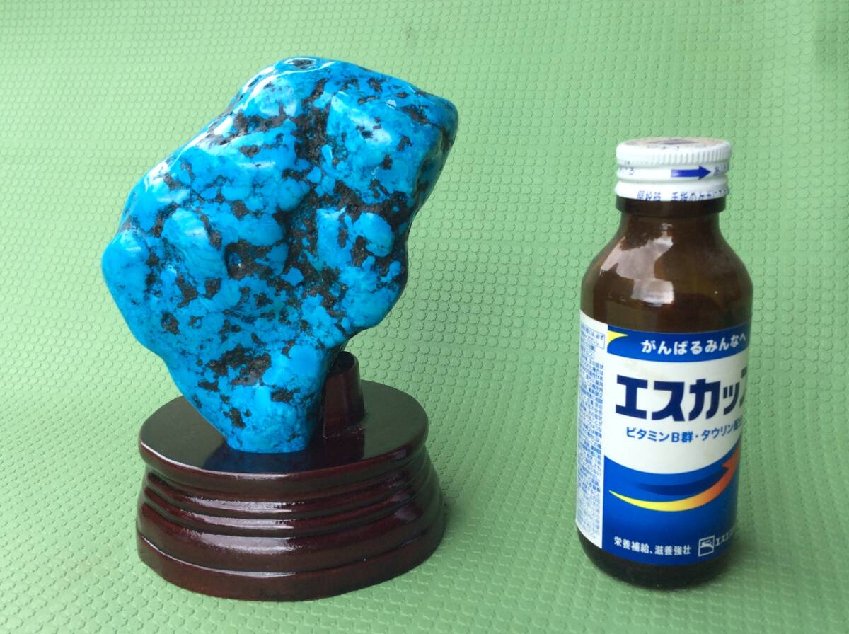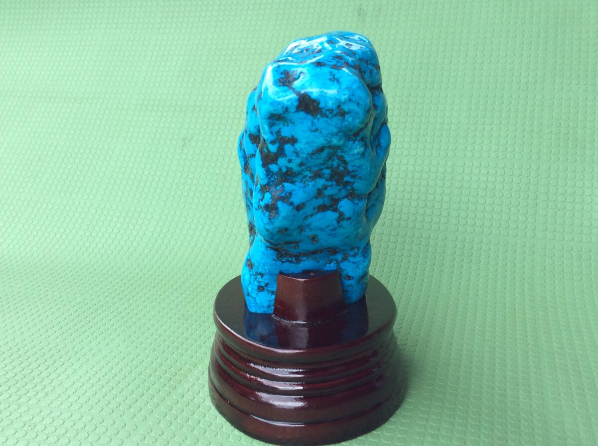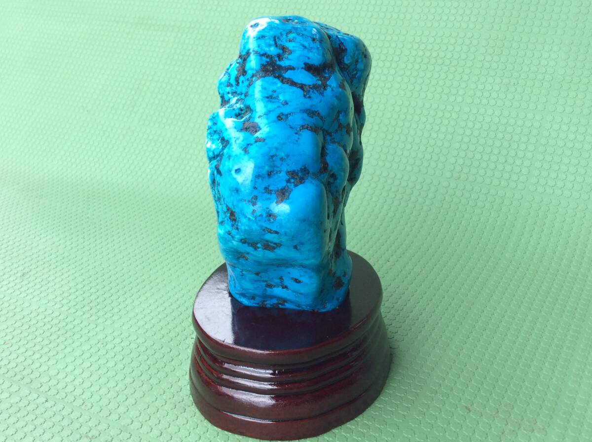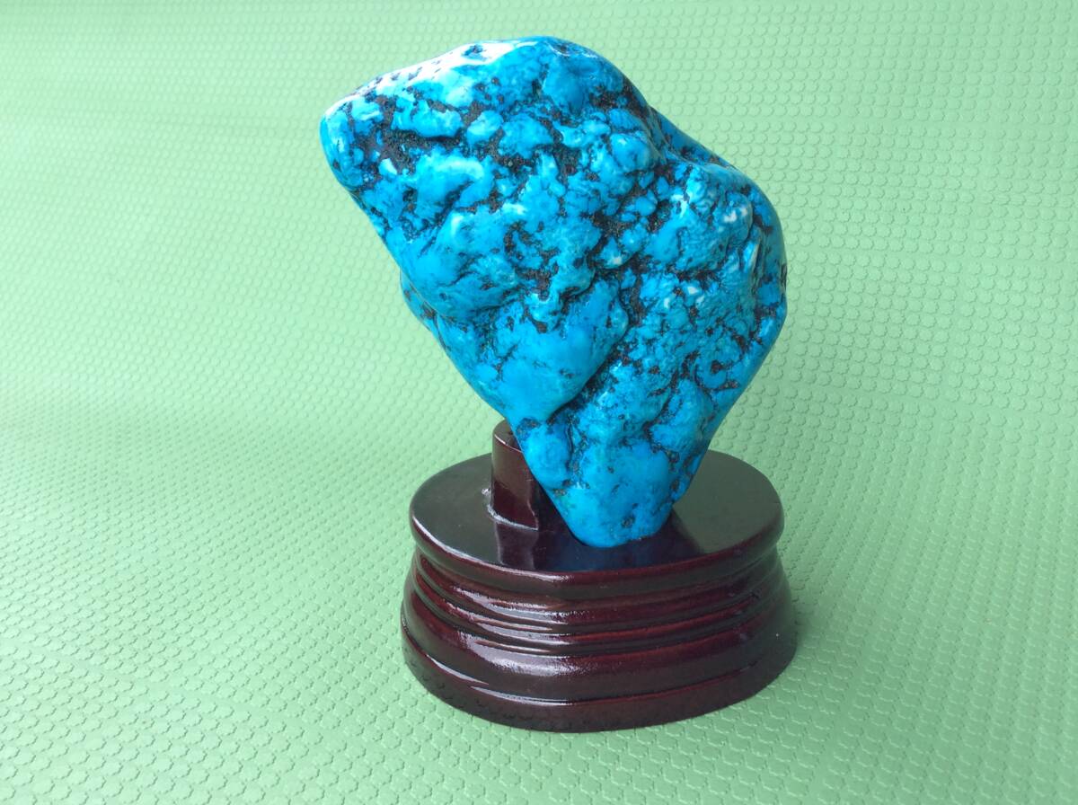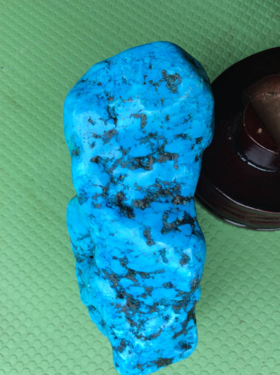 トルコ石 ターコイズです。1455g 台座付 着色してるようにも感じますが綺麗ですね!