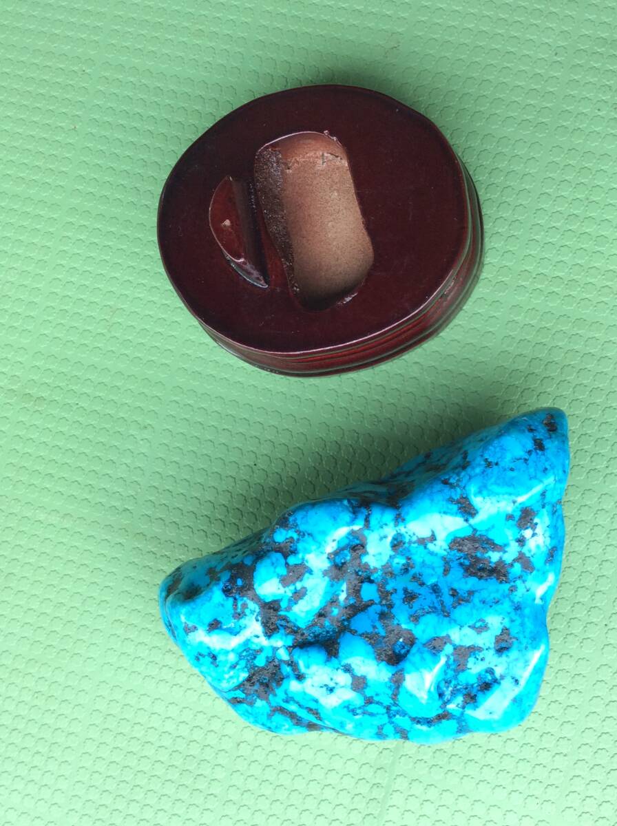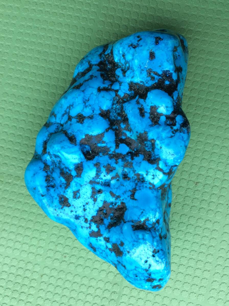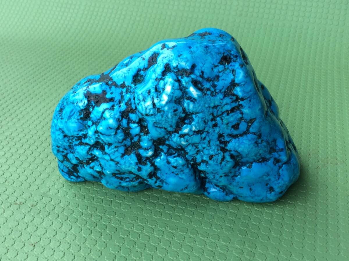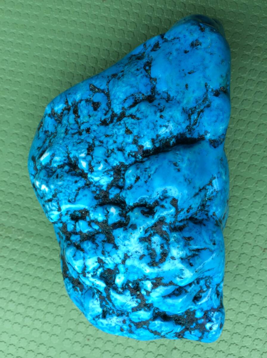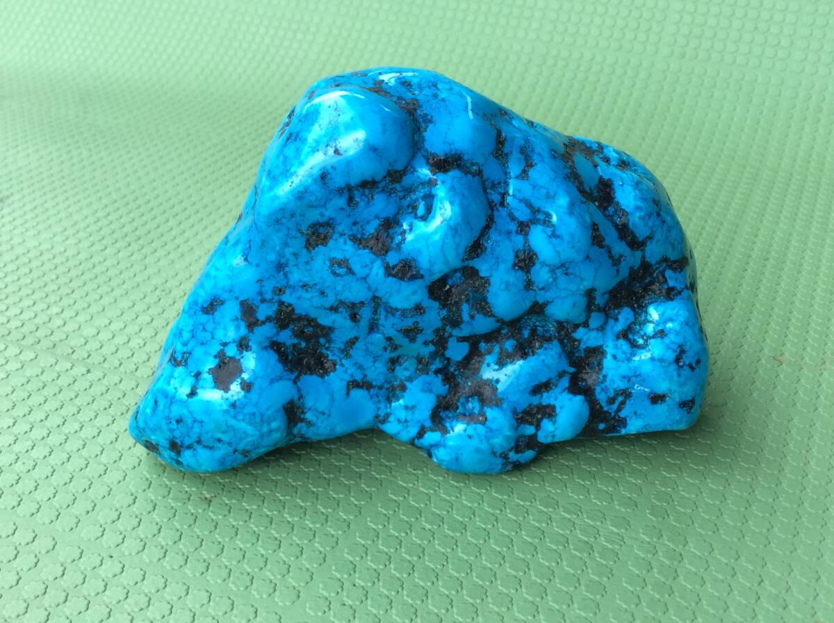 トルコ石 ターコイズです。1455g 台座付 着色してるようにも感じますが綺麗ですね!