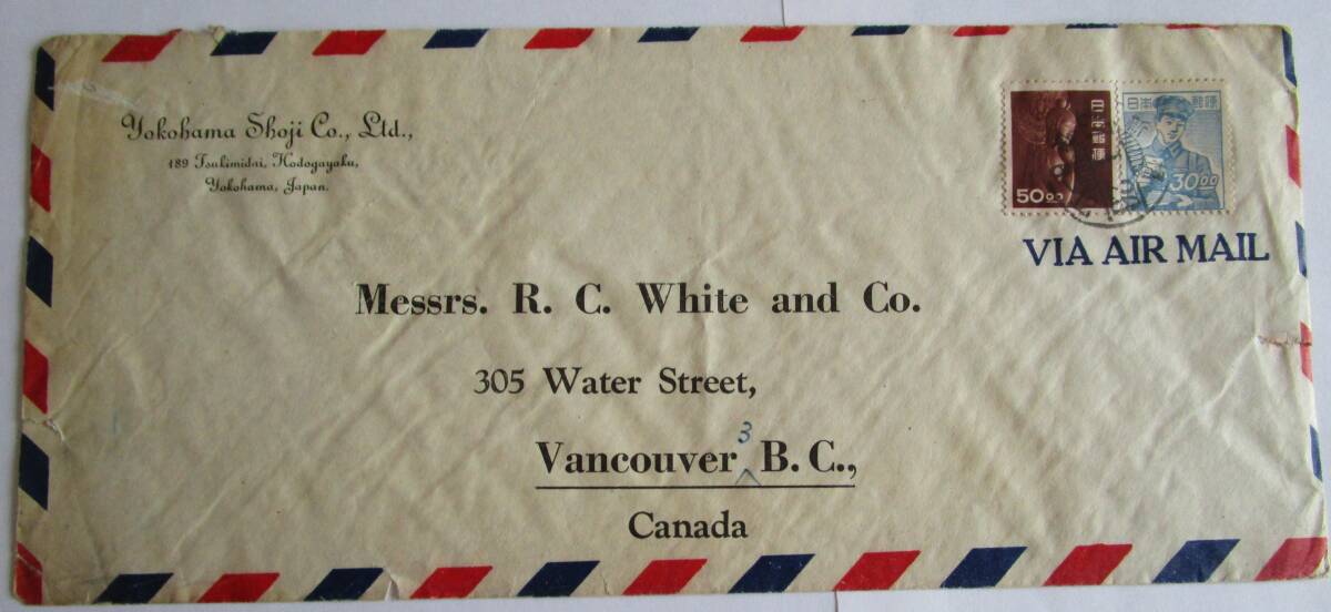 櫛型印新橋27・1・26消(画像3参照)→カナダ・バンクーバー宛。