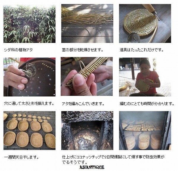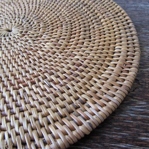 天然のアタを編み込んで作った円形のランチョンマットです。鍋敷きや花瓶敷きにお使いいただけます。