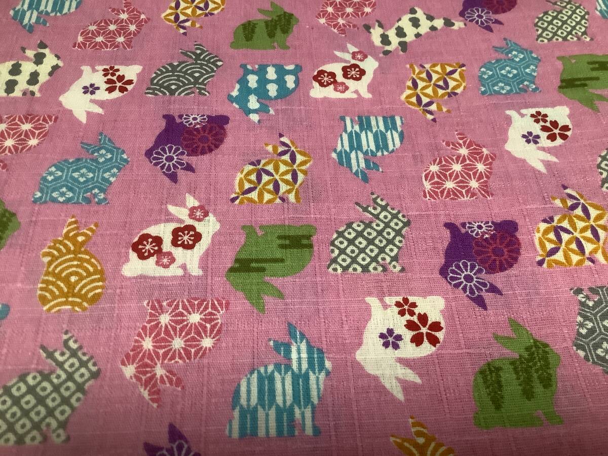 5m ドビー 110×500cm ピンク 綿100% うさぎ 日本製 / 生地 はぎれ ウサギ 兎 サザンクロス 和柄 小紋 WAGARA