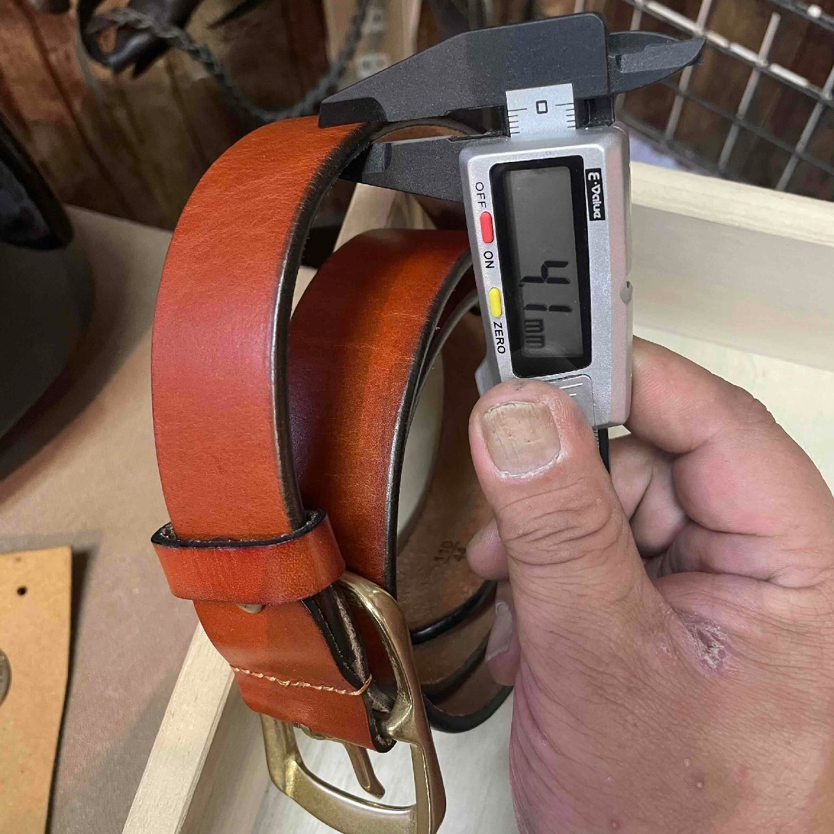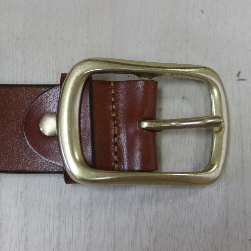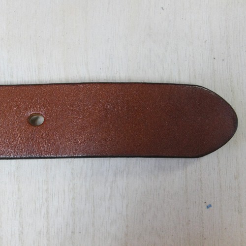 植物タンニンなめしの牛革プレーンベルトの茶色です、4mmの厚さがありますがとても柔らかく馴染みやすいです、幅は3.7cm、全長は110cmありバックルの留め位置から90cmから100cmの所に5カ所穴が開いています、バックルはネジで留まっており本体と切り離し可能でベルト本体上部をお好きな位置でカットしバックルを留めるネジ穴を開けていただくとお好きなサイズにカット可能です。(別途カット用のハサミ、穴あけポンチが必要ですが100円ショップなどで販売されている安価な物で対応可能です。)サイズカットに関しては説明書をお付けします。バックルは真鍮無垢製で当店で3800円で販売されている物と同等の物が付いています、スーツからジーンズまでカジュアル、フォーマルどちらにもあう万能なベルトです、又、本品とサイズ違いの全長120cmの商品もご用意しております、ページが見つからない方はお気軽にお問い合わせ下さい。