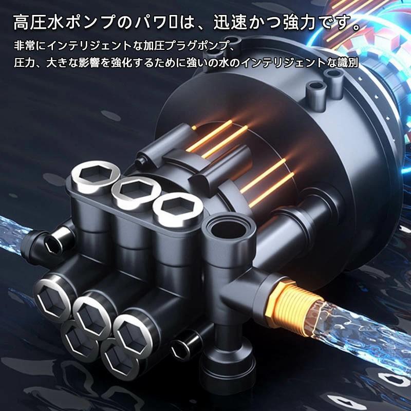 高圧洗浄機 コードレス 充電式 12MPa 600W 強力な噴射 8-10M 20000mAh 長時間持続 60-80分 コードレス高圧洗浄機 6合1多機能ノズル 自吸式