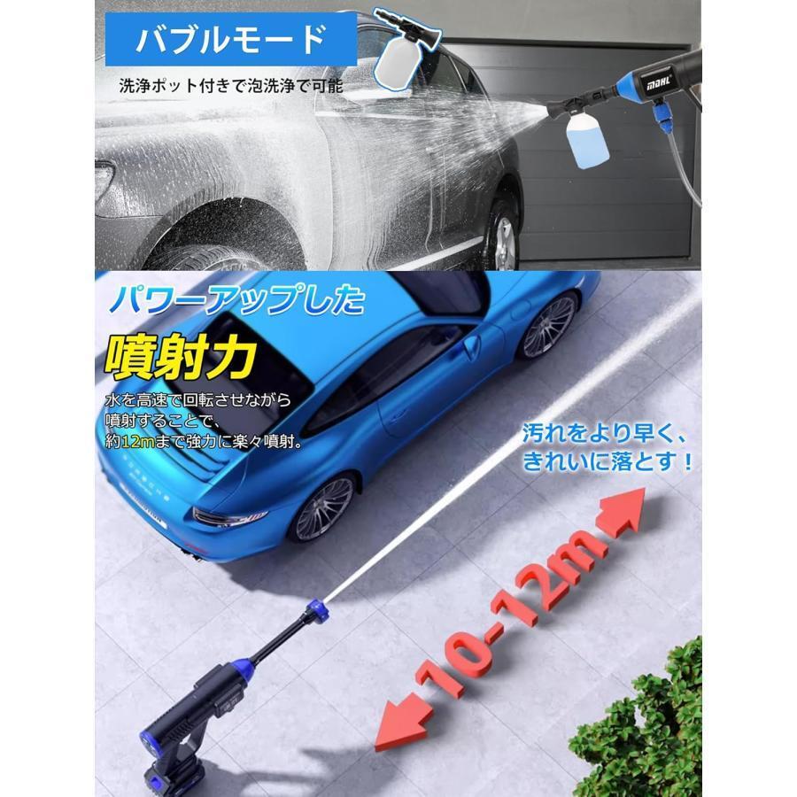 1. 高効率な洗浄機能: 最新第3世代加圧ポンプ搭載、噴射水圧12MPa、噴射距離10メートル。強力な高圧で、室内外の頑固な汚れを簡単に除去。軽量1.2kgで持ち運びも簡単。便利な収納ボックス付きで、省時間・省水の洗車用品です。