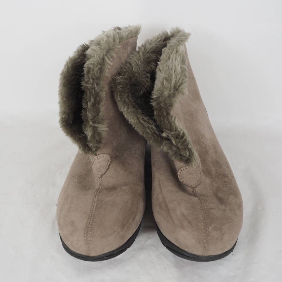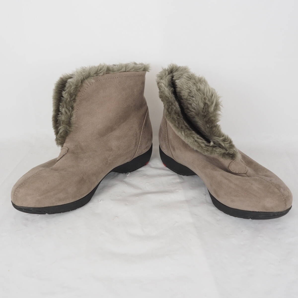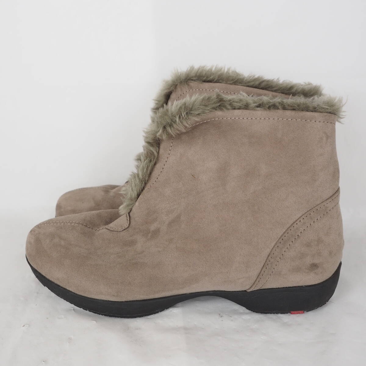 ページをご覧いただきありがとうございます^^靴、ブーツを中心に出品しております。 ふんわりファーが暖かく、冬のコーデにぴったりなショートブーツです。 ☆商品詳細☆履き口にボアが付いており、寒い日でも快適♪ 柔らかな色合いで、どんな服にも合わせやすいデザイン。