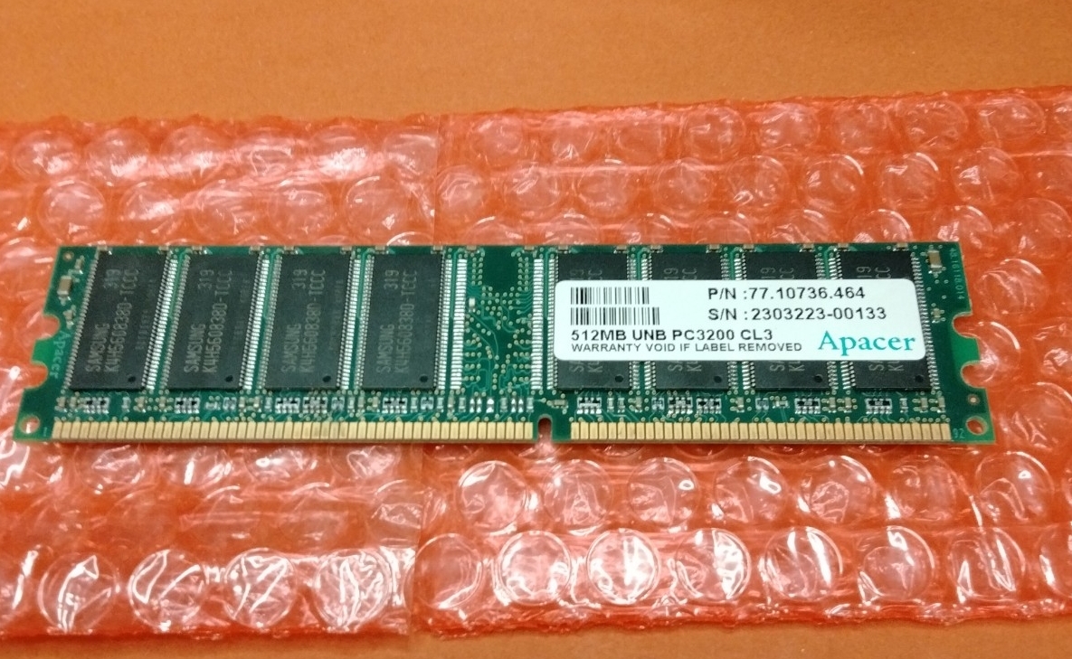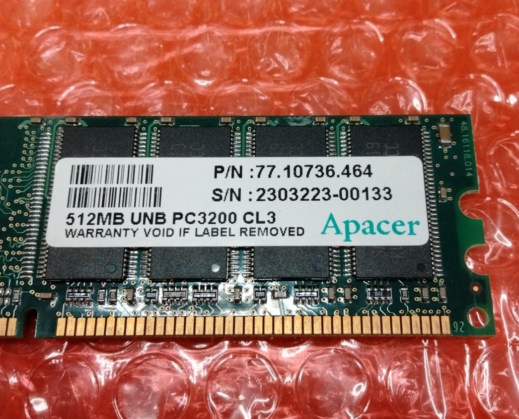 (送料140円~) PC メモリー 512MB UNB PC3200 CL3 Apacer #3252