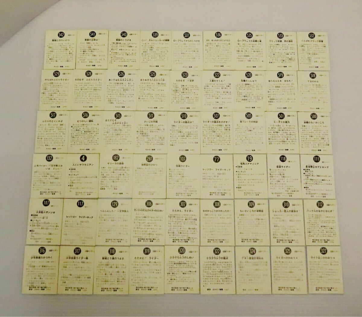 ![]() ![]() ![]() 仮面ライダー カルビー ミニカード 大量339枚 昭和レトロ ライダーチップス 特撮/東映/石森プロ/当時物/ヴィンテージ ご覧いただきありがとうございます! こちらは、 【激安1円スタート】当時物!仮面ライダー カルビー ミニカード 大量339枚セットになります。 商品の魅力ポイント ・昭和レトロな仮面ライダーカードを一挙339枚収録! ・全て画像のとおり、ダブり無しの構成(確認ミスがある場合がありますので必ず画像でのご確認宜しくお願い致します。) ・ライダーチップスなどで人気を博した東映・石森プロ監修のミニカード 状態について ・中古品のため、経年による色褪せやスレが見られます。 ・美品をお求めの方や、状態に敏感な方はご入札をお控えください。 ・状態は画像にてご確認ください。 ・裏面の画像は全て撮影できておりませんので画像9と画像10にて一部撮影した画像を添付しております。 発送方法 ・安心のゆうパック発送 ・破損防止のため、丁寧に梱包してお届けいたします。 昭和仮面ライダーファン、ヴィンテージグッズの愛好家、コレクターの皆様におすすめです! この機会にぜひご検討ください! ※落札後、48時間以内にお手続き宜しくお願い致します。 48時間を経過してもお手続きがされていない場合は誠に不本意ですが落札者様都合での入札削除とさせて頂き、こちらもヤフオクより自動的に評価に『悪い』が付きますので予めご了承ください。 お支払いに関しましては、お支払い期限内でしたら問題はございませんが、お支払い期限を過ぎますと当方では対応する事が出来ませんので、その際も落札者様都合での入札削除となりますので宜しくお願い致します。 Vintage Kamen Rider Calbee Mini Cards Lot of 339 - Showa Era Japan Thank you for visiting! This is a vintage set of 339 Kamen Rider mini cards from the Showa era, originally released with Calbee snacks (Rider Chips). Highlights