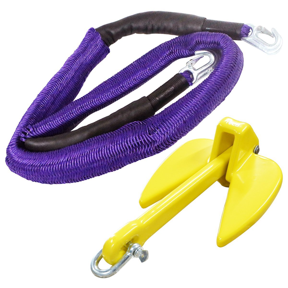 『伸縮ロープ/アンカーセット』ジェットスキー 爪型 アンカー 10LBS 4.5kg 黄色 6M フロート のびのび アンカー ロープ 紫