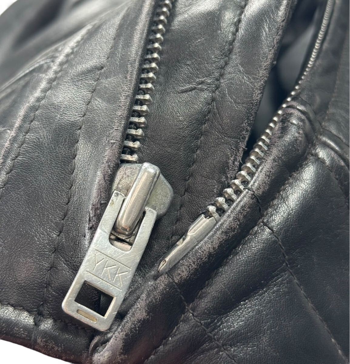 有名どころでは、James Dean(ジェームズ・ディーン)が愛用していたモデル(JD-1)とほぼ同型のようです。ショットの歴史の中でもタイトな時期の逸品で、縦長の美シルエットはまるでルイスレザー等のロンジャンのようです。(腕周りもワンスターや一般的なショットライダースよりも細身で美しいです) また、元々ベルトのないモデルです。(ジェームズ・ディーンも後付けでしたね)肩のエポレットもなく、腕周りも細身ですので、ショット特有の着た際の野暮ったさが一切ありません。また、裏地はキルティングでは無く中綿がないタイプなので、スッキリ着れます。(厚手のインナーを着てももっさりしません) usedですので、襟やフロントジッパー周り等箇所箇所にスレ等ございますが、ワンスターなどの量産タイプと違い、革も上質かつ厚手のものを使用しております。(画像ご参照下さい)ジップ類は歯抜け無し、スムーズに全可動。