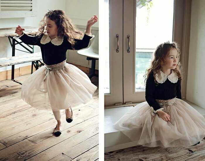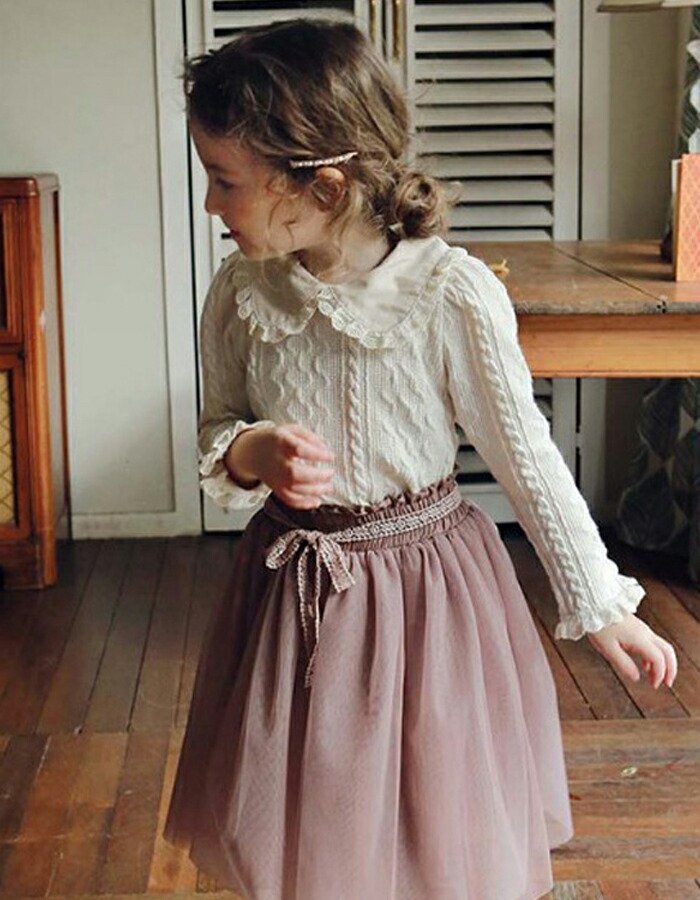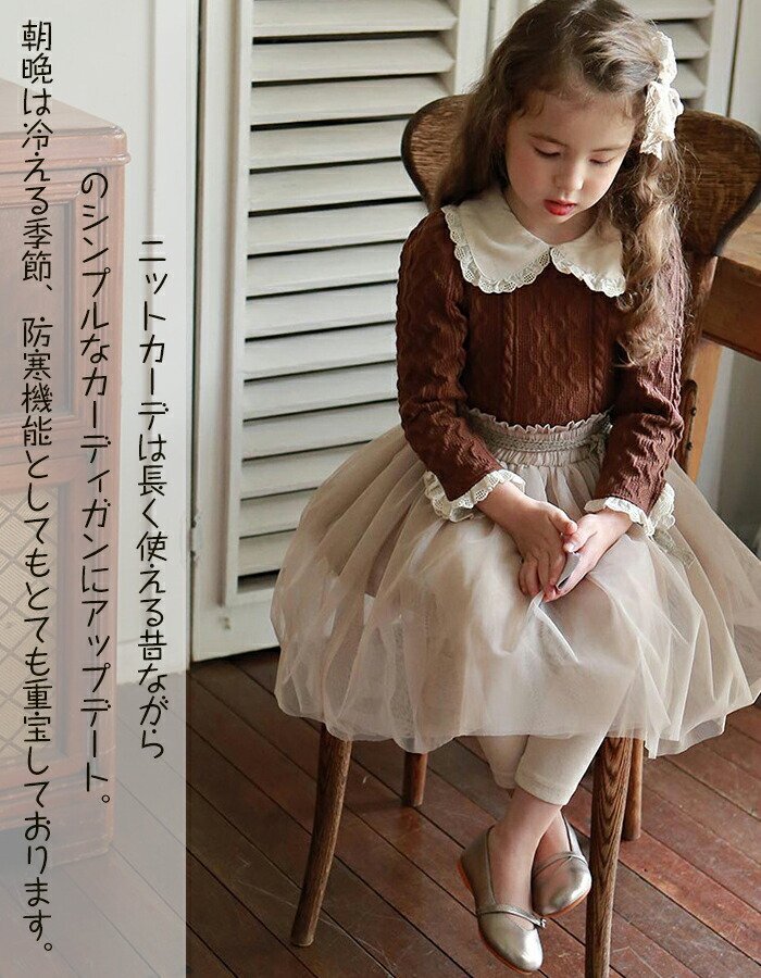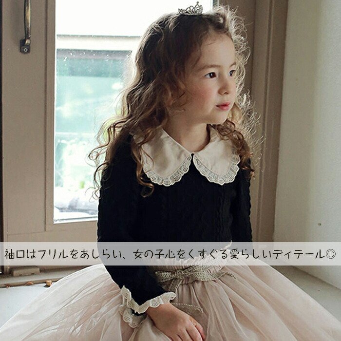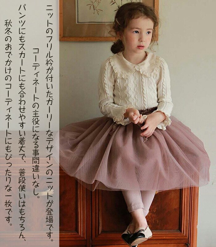 キッズ ニットセーター 女の子 ニットカットソー 綿 襟付き ガールズ フリル ニット セーター トップス インナー 長袖☆4色/80-130選択/1点