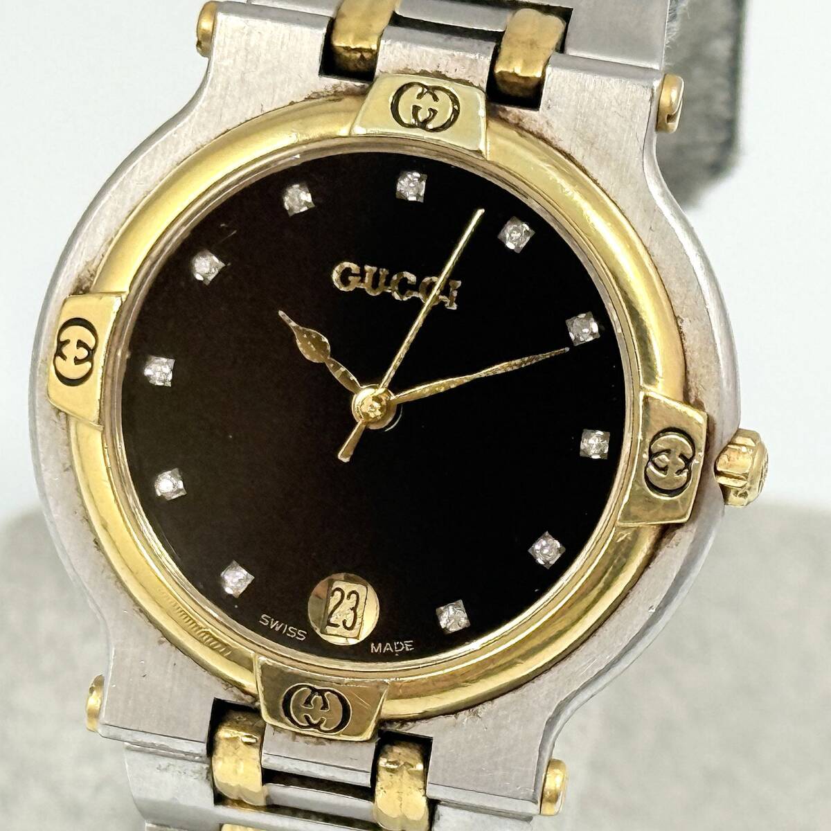 稼働〇 グッチ 9000M メンズ 12P シルバー 腕時計 クオーツ GUCCI