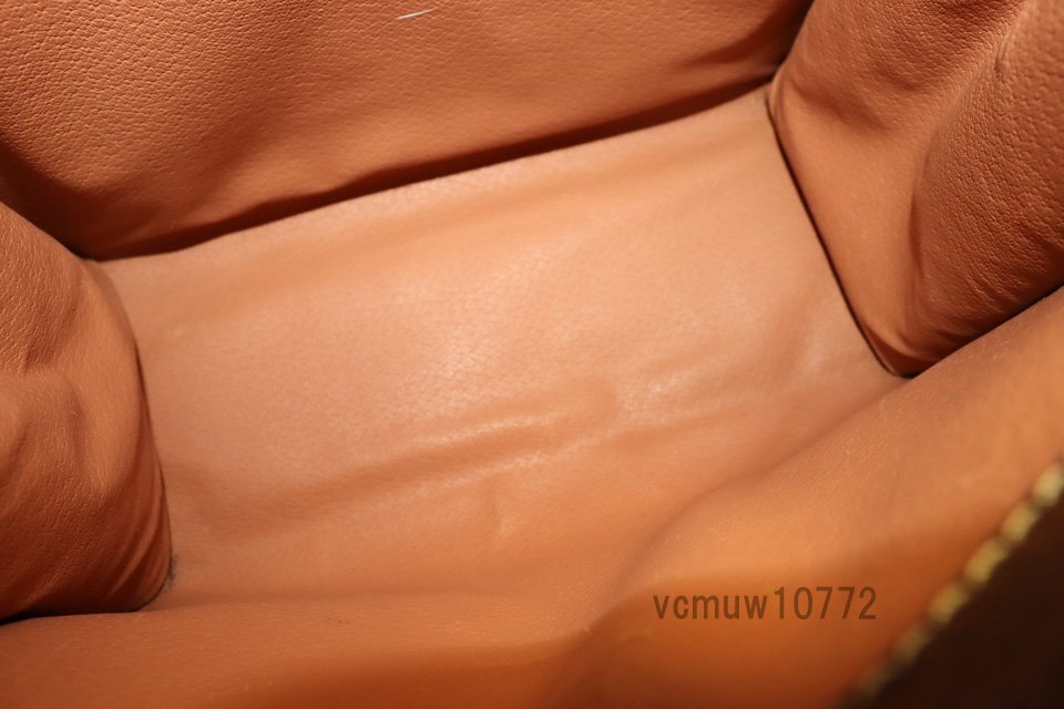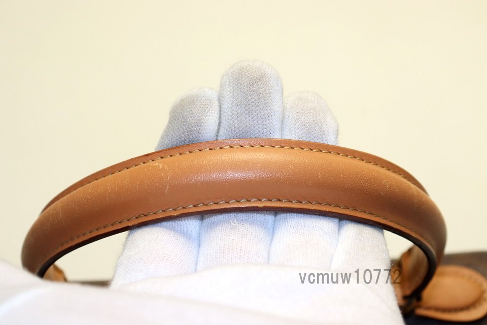 中古ですので新品と比較してすれ、小傷、色むら、若干の型崩れ、使用に問題ないレベルの糸ほつれ、金具にくすみ等ございますが写真の通りコンディション良好です。