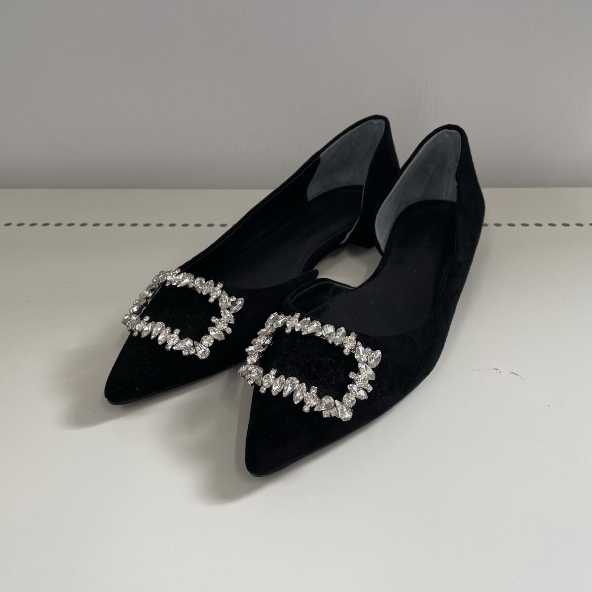 【TSURU by Mariko Oikawa】ツルバイマリコオイカワ パンプス Catherine フラットパンプス 37 スウェード ブラック 33
