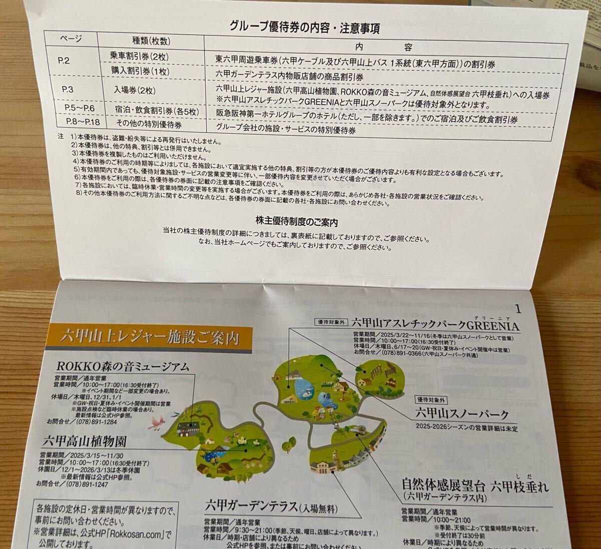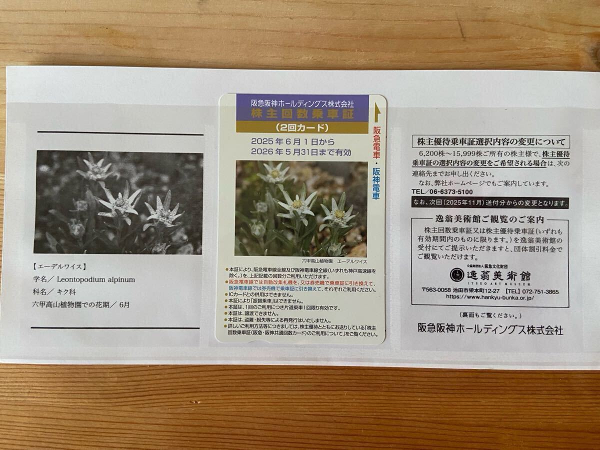 阪急阪神ホールディングスの株主優待乗車証2回分とグループ優待券です。