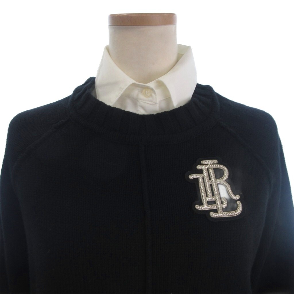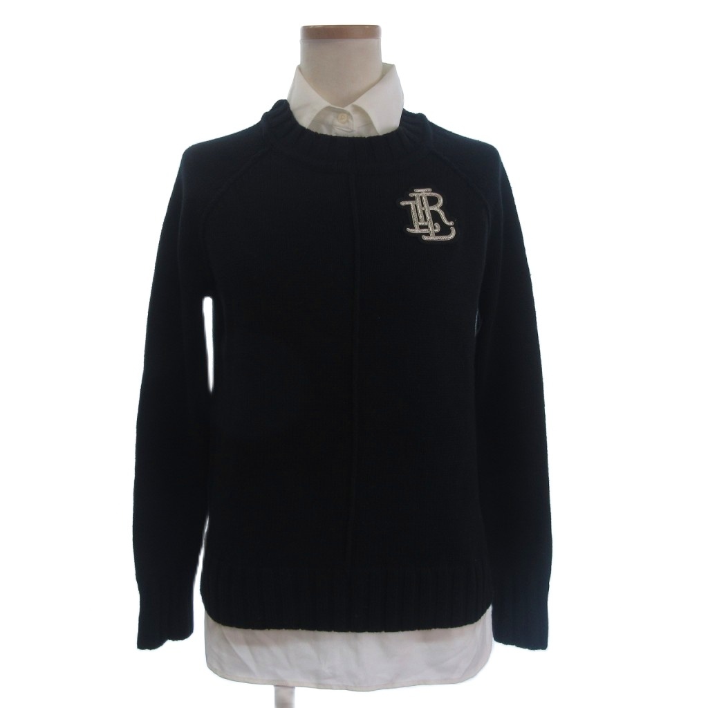 ローレンラルフローレン LAUREN RALPH LAUREN ニット セーター 長袖 ドッキングシャツ ワッペン 黒 白 ブラック ホワイト XS ■FF レディース