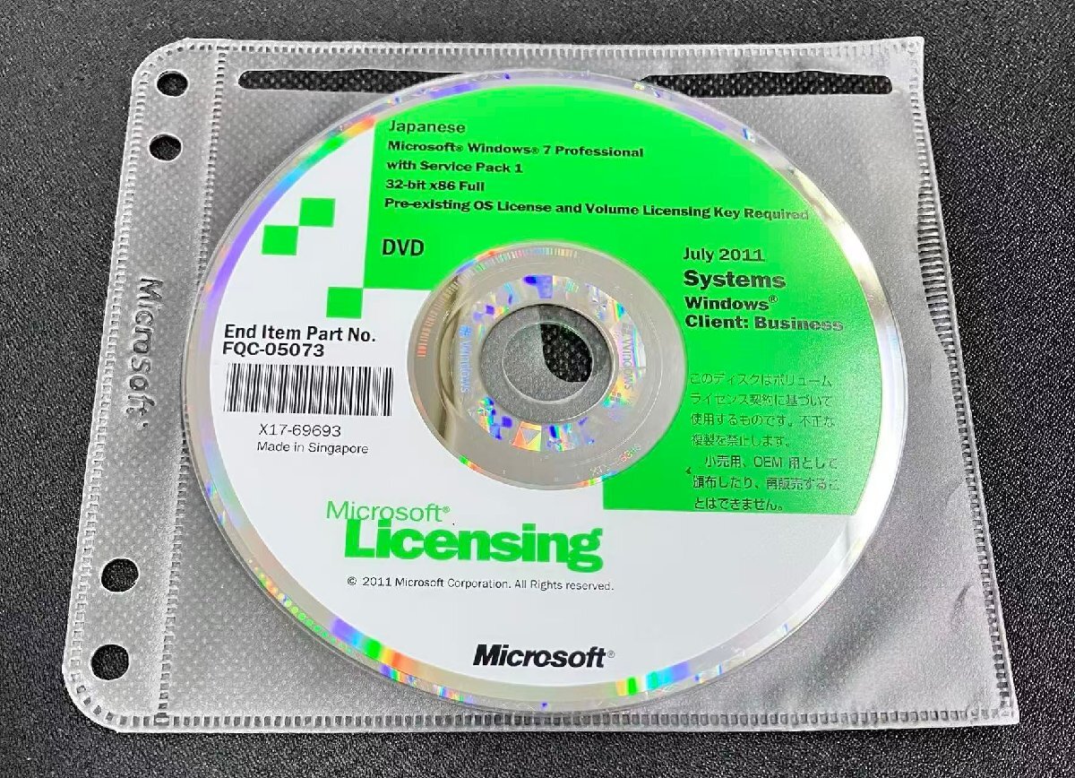 商品 | Microsoft Licensing Windows 7 Professional SP1 32bit x86 Full (End Item Part NO.FQC-05073) |