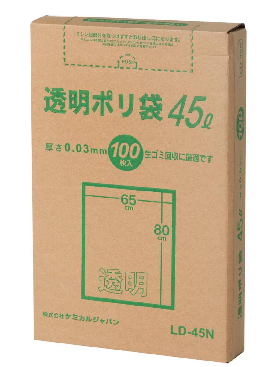 ケミカルジャパン ゴミ袋 透明ポリ袋 45L BOX 100枚入 LD-45N