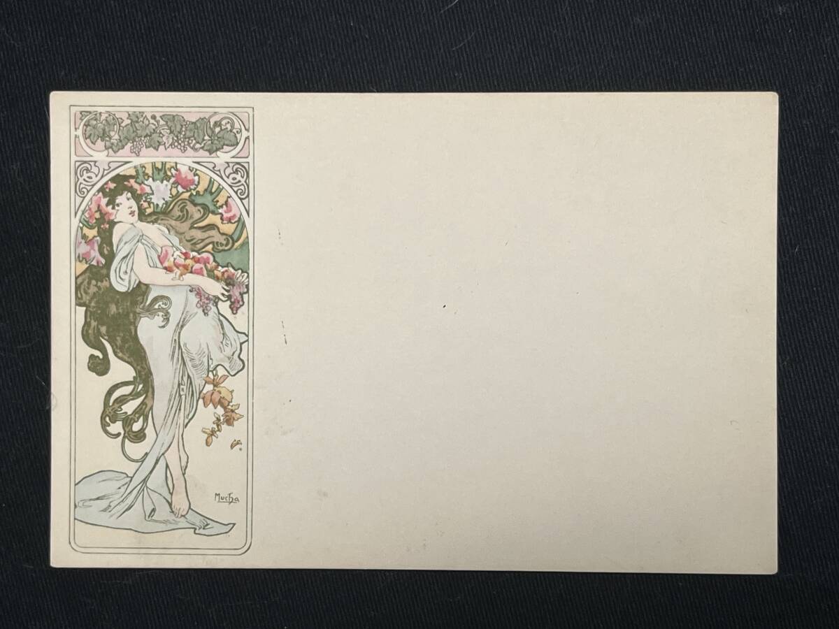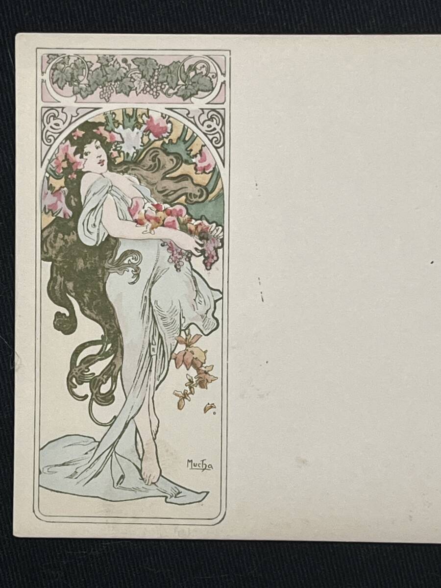 ★ ミュシャ「ショコラマッソンのカレンダー 秋」オリジナルリトグラフ絵はがき | |||