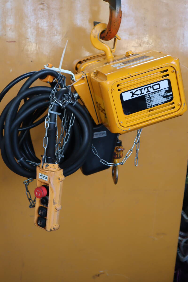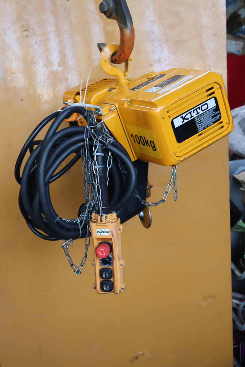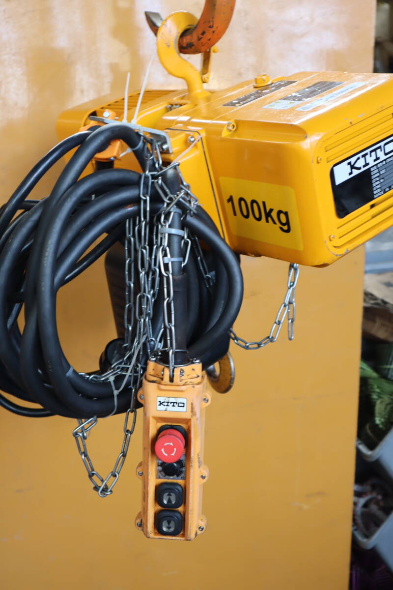 | KITO 電動チェーンブロック 100kg 三相200V チェーン長さ4m, 整備点検済 動作確認済 即決価格 | ||