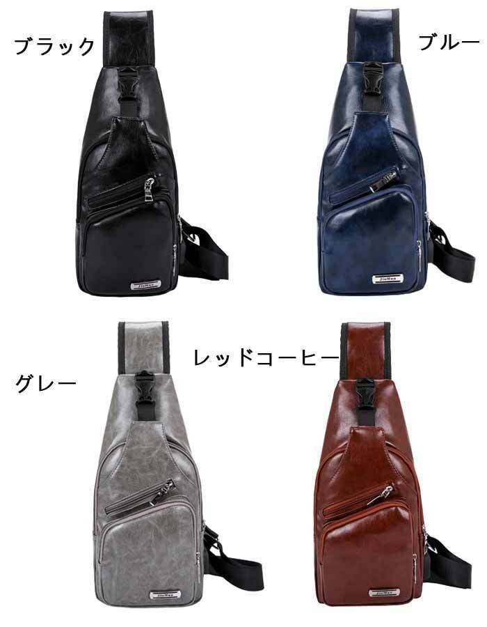 ボディバッグ USBケーブル 携帯充電 メッセンジャーバッグ メンズ ワンショルダー ボディーバッグ ポケット付き ☆カラー/4色選択/1点