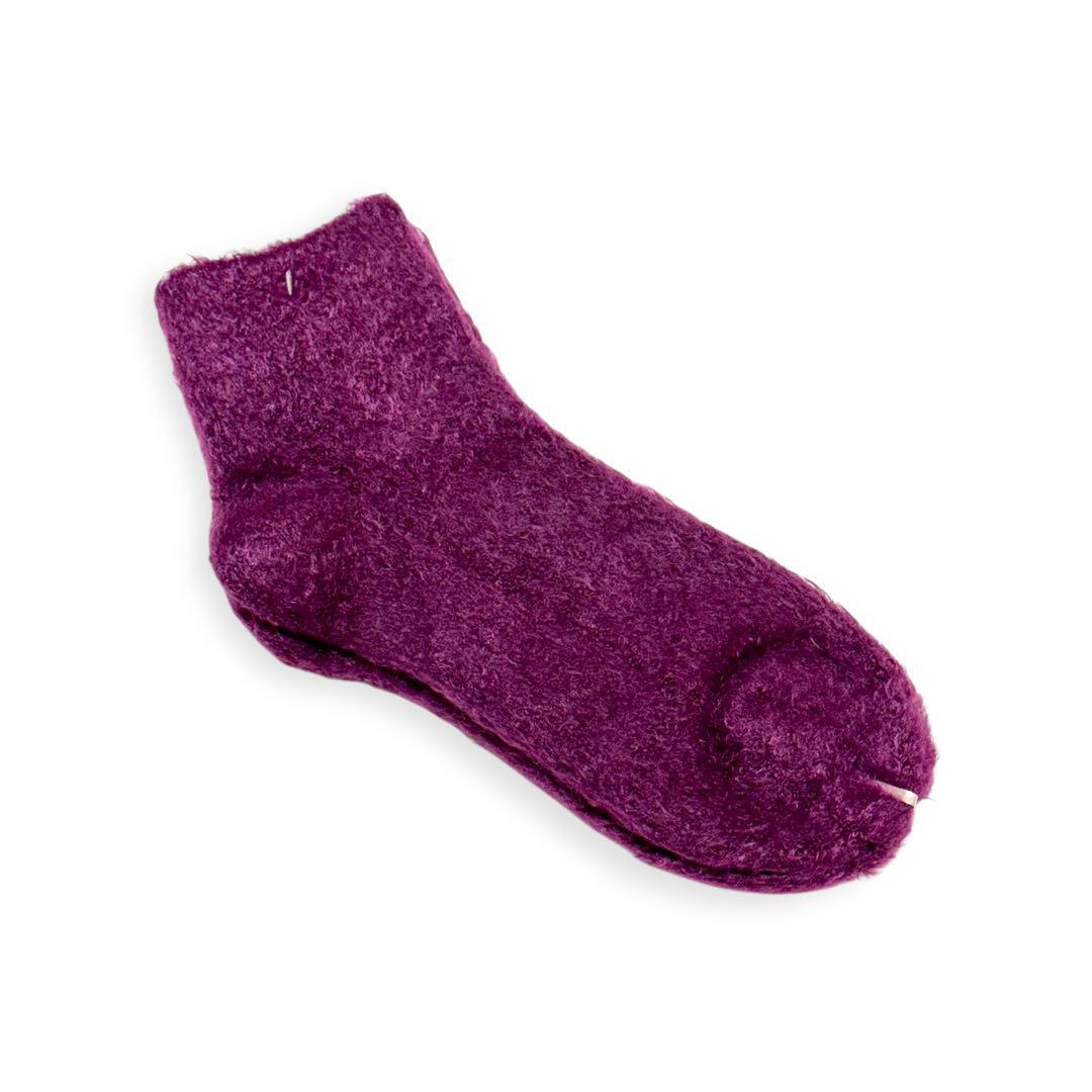 ファーヤーン素材のパープルソックスで、暖かさと快適さを提供します。