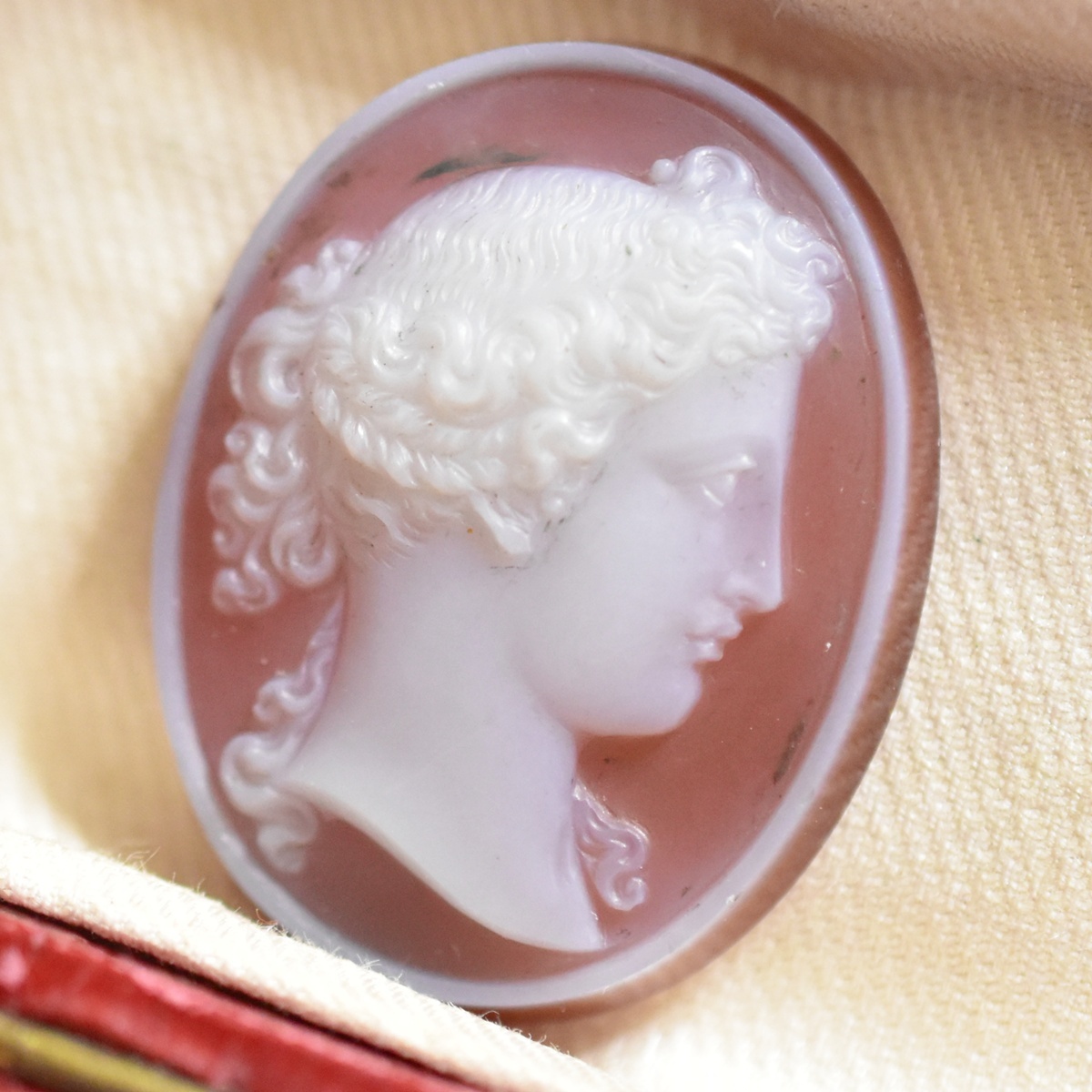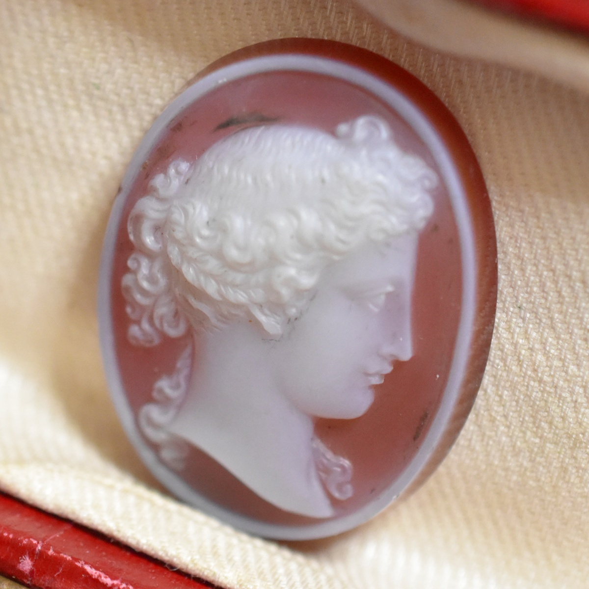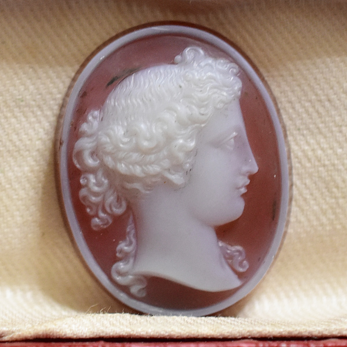19世紀後期ごろに作られたアンティークハードストーンカメオです。