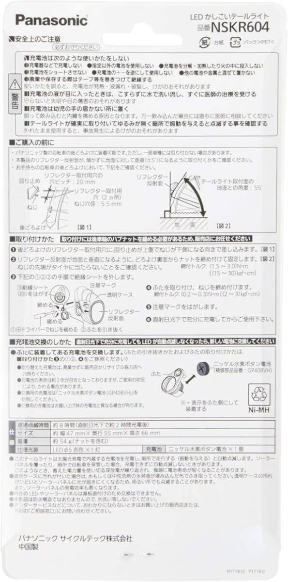 パナソニック(Panasonic) LED ソーラーオートテールライト 後ドロヨケ取付式 自転車 W47×H55×D66mm NSKR604 単品/ライトセット各 AF247