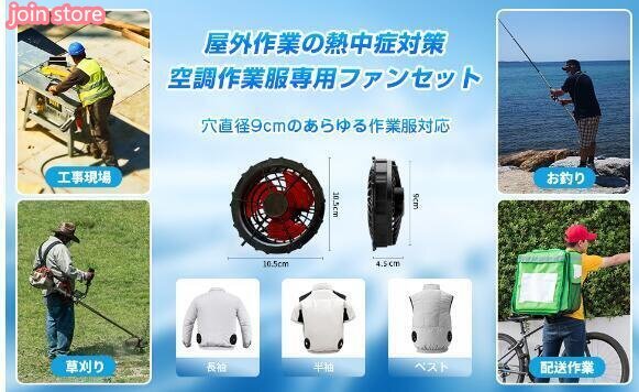 新品【20000mAh大容量空調作業服ファンバッテリーセット】24V超高出力4段階風量調節 穴直径9cmのあらゆる作業通用