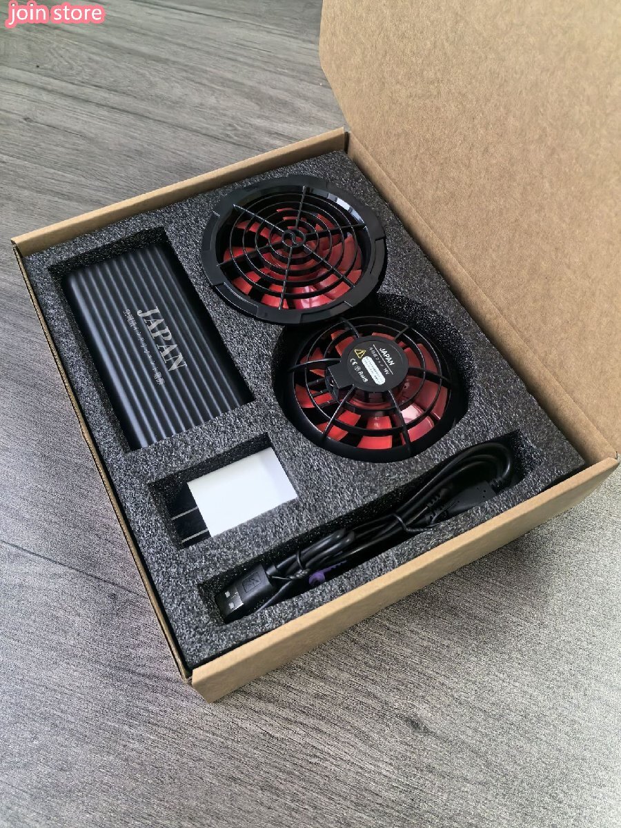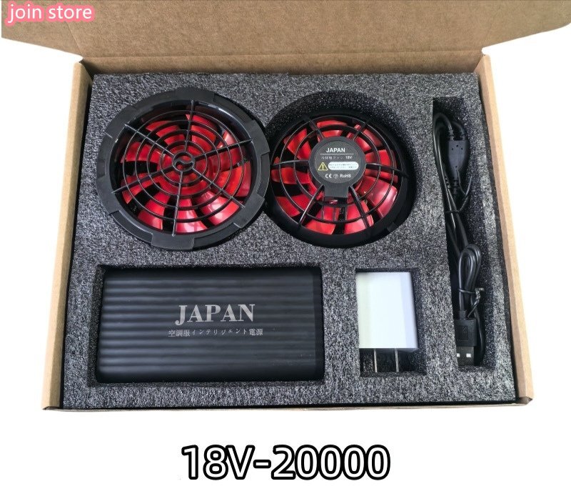 【セット内容】 20000mAhバッテリー*1、 ファン*2 、 DC接続ケーブル*1、 接続ケーブル*1 。