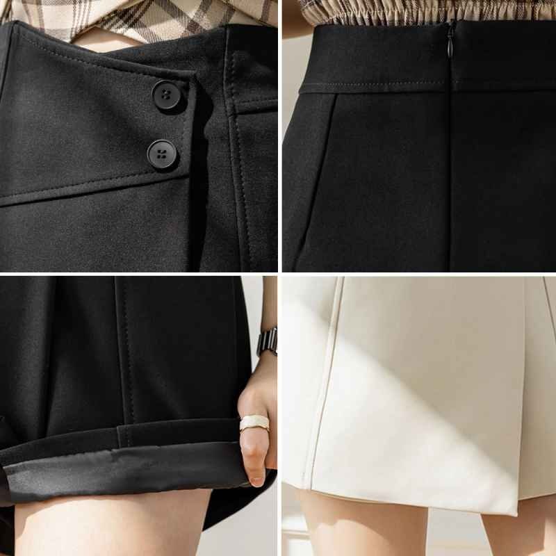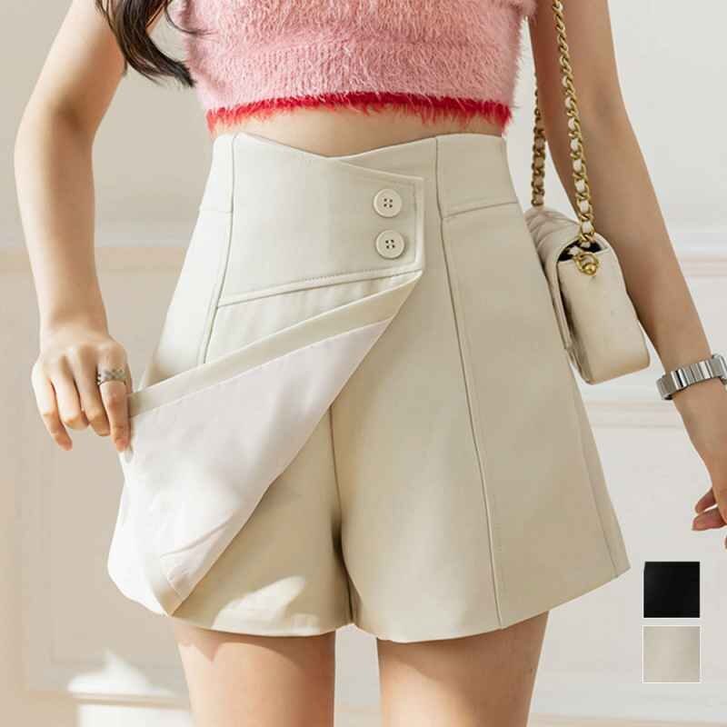 ラップスカート見えするショートパンツです。中がしっかりとパンツの作りになっていてミニ丈でも安心◎