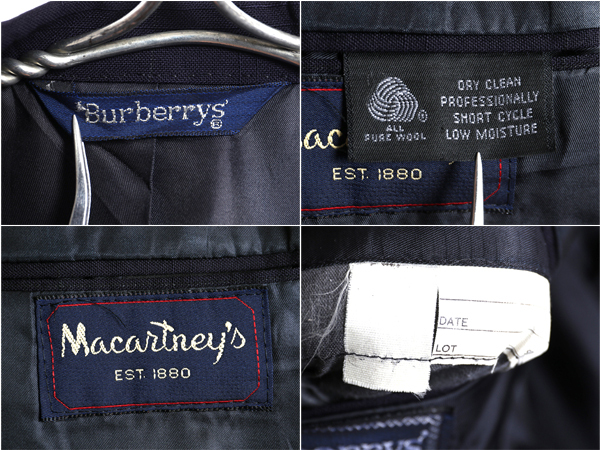 90年代のオールド 旧タグ 1856年創業のイギリスを代表するブランド BURBERRYS PRORSUMのテーラードジャケットです。 バーバリー・プローサムは、バーバリーの中でも 最もデザインや素材にこだわって作られている最高級ラインです。 BURBERRY(S)表記のある2000年代以前、90年代の商品です。 素材は、100% WOOL ( ウール ウールマーク付き) 起毛のない、まったくチクチク感のない上質な素材 サマーウール程の薄さではありませんので 秋冬に対応する素材です。 羊毛を細く撚った生地天然素材ならではの通気性と清涼感があり サラリとした肌触り、丈夫でシワになりにくいのが特徴のウール 内側には脱ぎ着のしやすいスムース素材のライナー付き 幅広い季節にストレスなく着て頂けます。 MADE IN USA ( アメリカ製 ユニオンチケット 付き ) 2ボタン フロント、 3ポケット、両サイドのポケットはフラップ付き センターベントのクラシカルなデザイン 合わせやすいダークネイビー 一見無地に見えますが、同色のウインドーペンチェックの織柄入り さりげない、大人のお洒落なグッドデザイン 丁寧な仕立て、高級感のあるルックス シルエットの美しさは言うまでもありません どこに出かけても恥ずかしくない 洒落た大人のジャケット 入手困難な旧タグ バーバリー 最高品質プローサムのセンスと美学が伺える商品です。 |