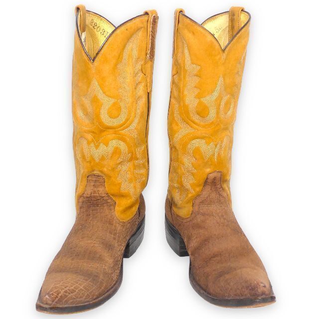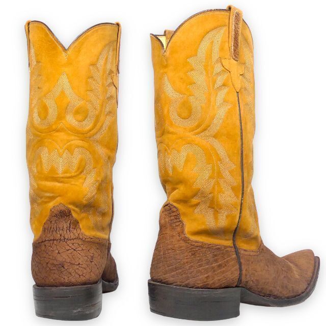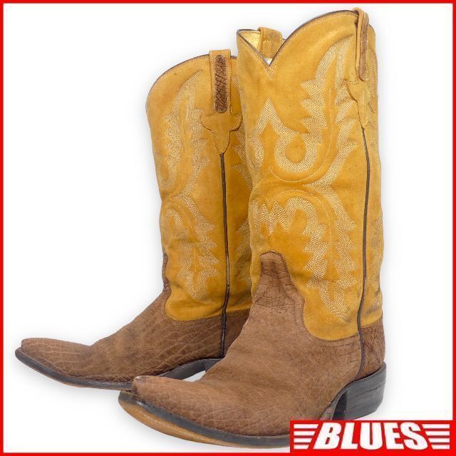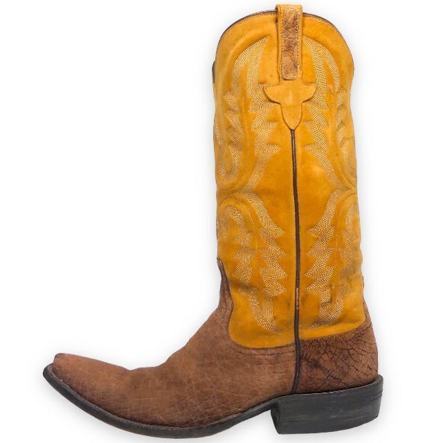 即決★Rios of Mercedes★25cm位 レザーウエスタンブーツ リオスオブメルセデス メンズ 茶 ベージュ スエード 像革 本革 カウボーイブーツ 本皮 ロングブーツ ペコス ヒール
