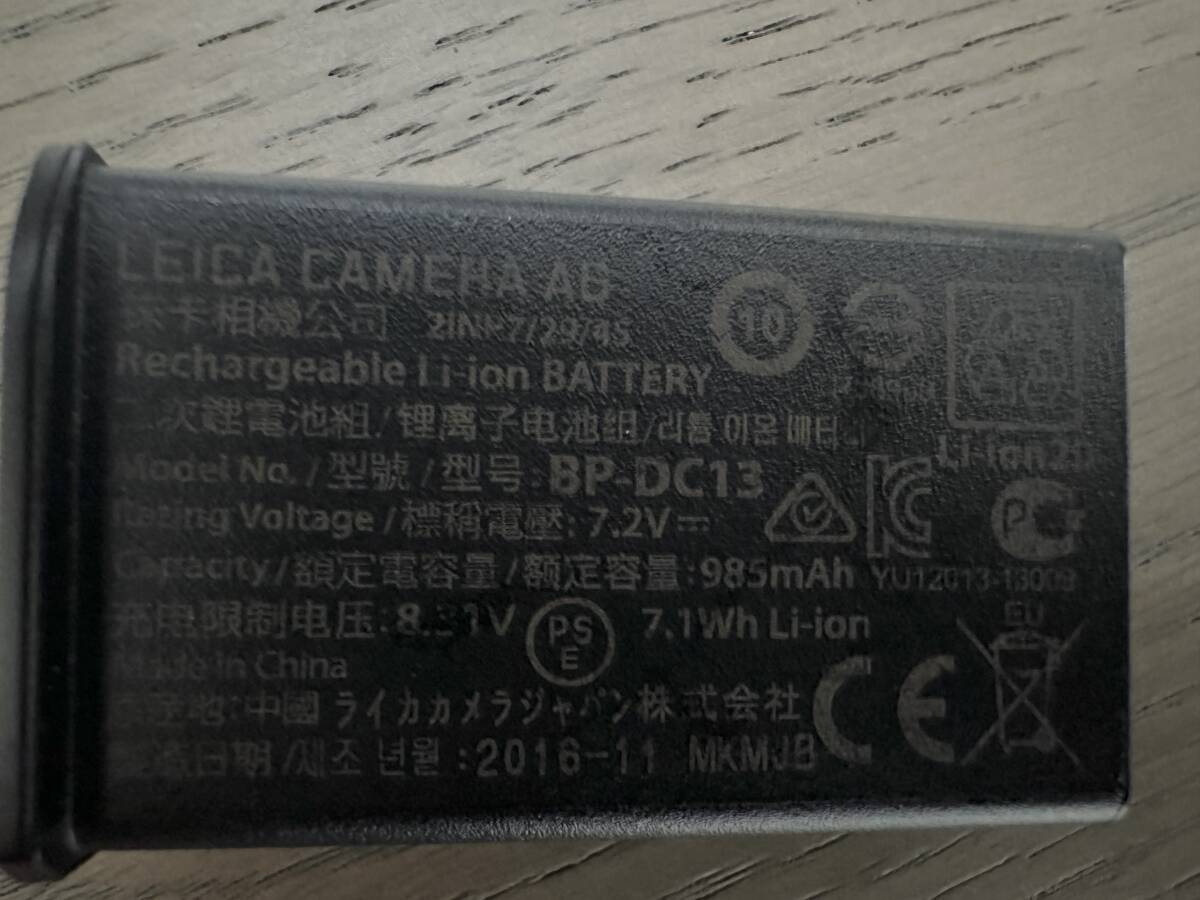 Leica リチュームイオンバッテリー BP-DC13 (Leica TL用) 中古 の出品となります。 Leica TLを手放しましたので不要となりました。いつものようにノークレーム、ノーリターンでお願いいたします。