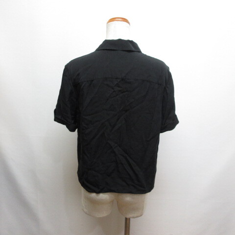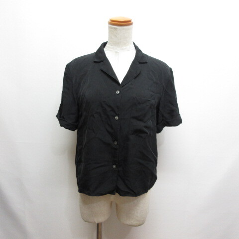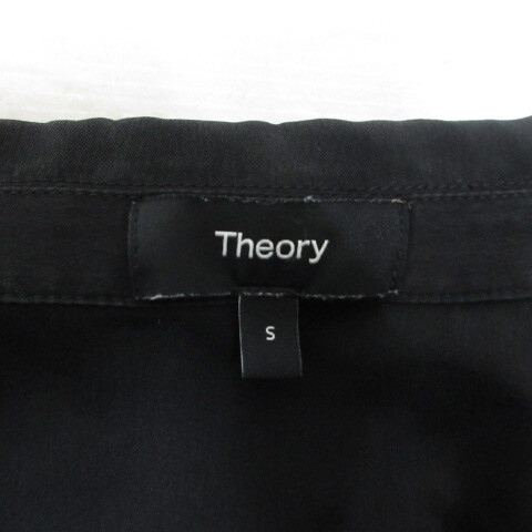 セオリー Theory 半袖 オープンカラー シルク シャツ ブラウス S 黒 ブラック レディース