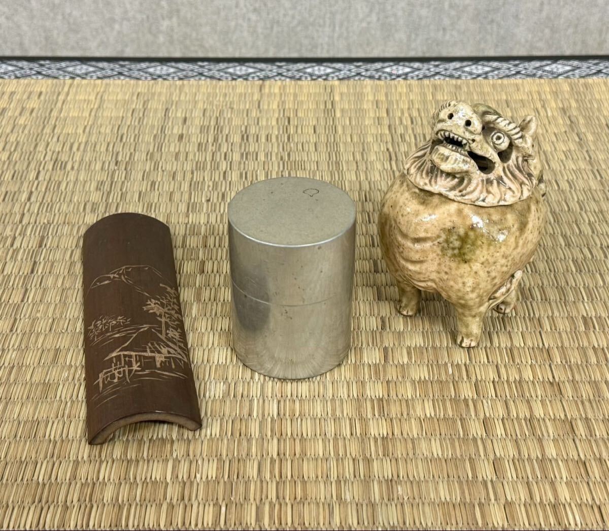 煎茶具 錫茶入(継山) 茶合 信楽焼獅子香炉 計3点 纏めて