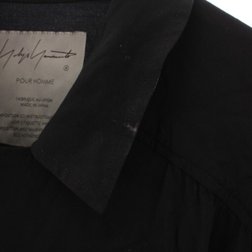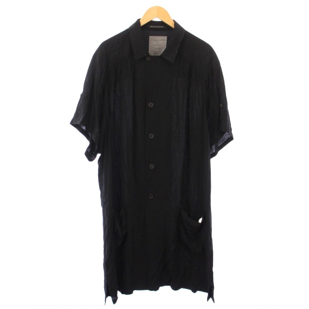 ヨウジヤマモトプールオム セルロースローンショートスリーブドレス シャツ 半袖 ロング丈 無地 3 黒 ブラック HS-D10-220